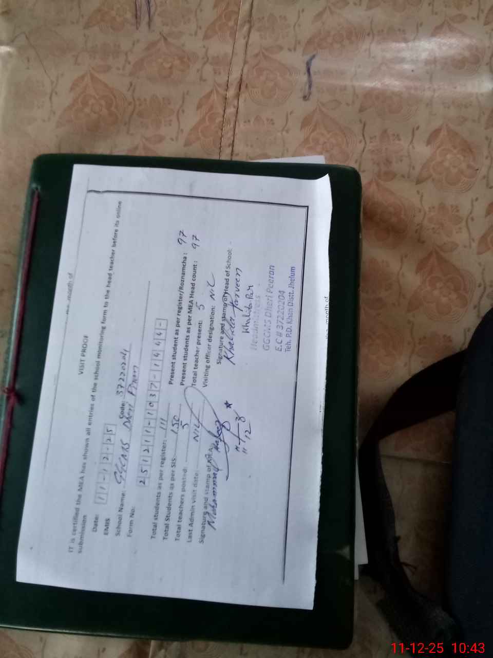 | Name: TA**** FA**** Designation: (School Headmaster's/Headmistress's) S.S.T.(Arts) Phone/Cell Number: 03**** |