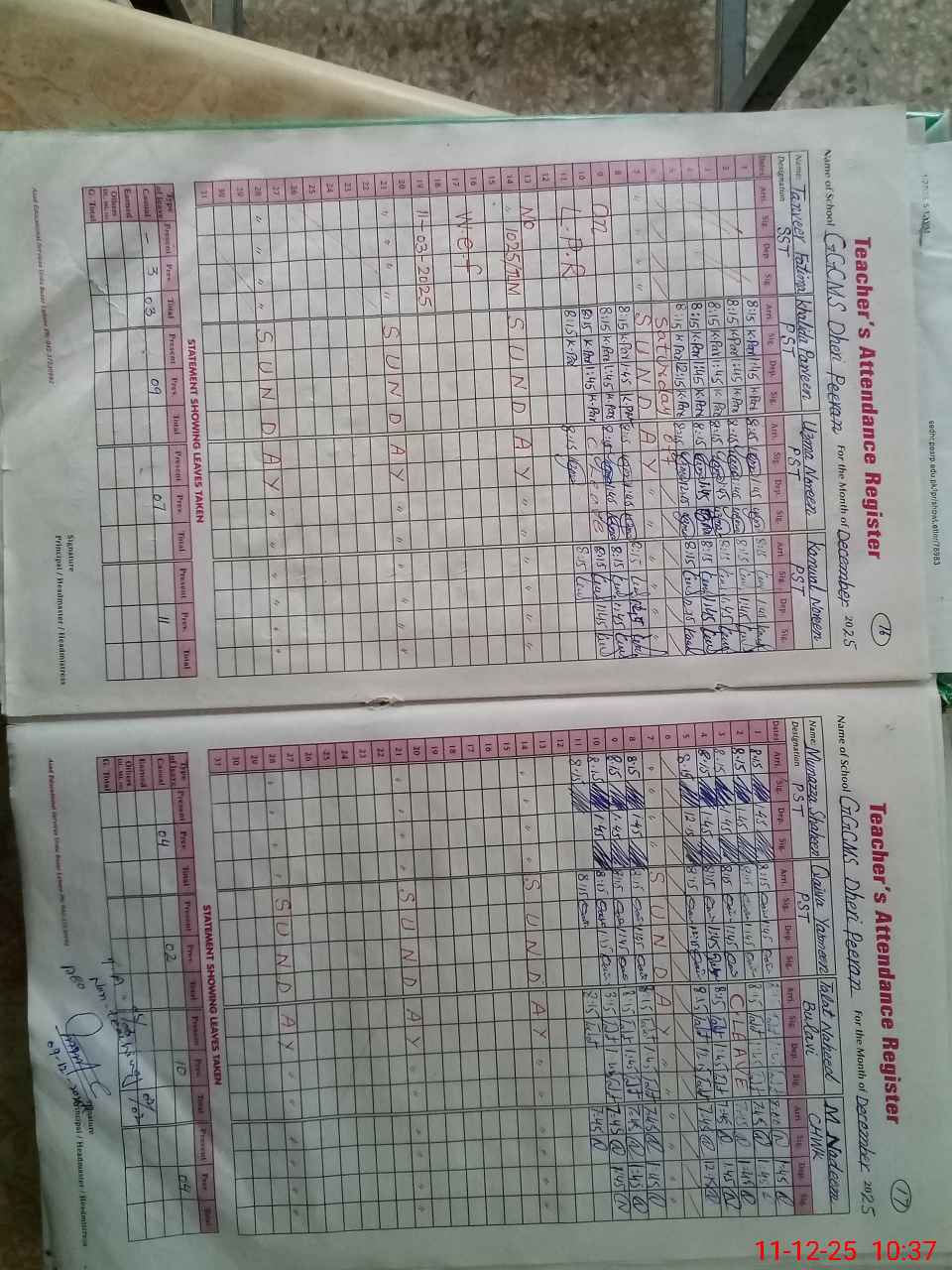 | Remarks (Use Separate Page if Required): Sir Headmistress SST Khalida Parveen no knowledge about school information. When I question about sanctions teacher post she have no knowledge about it. When I question about training of care giver she said I not know. | |||||