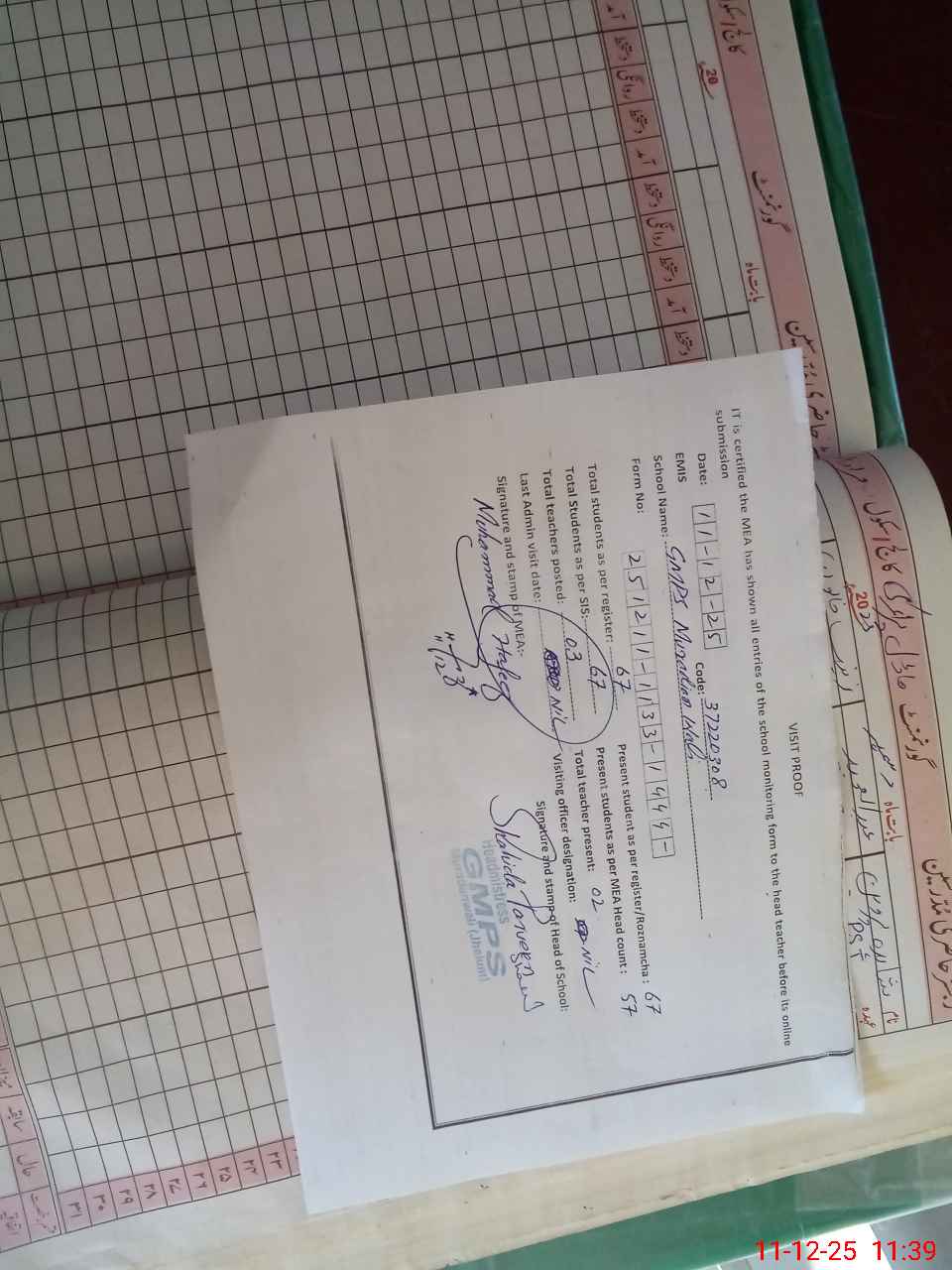 | EMIS Code: 37220308 | Name of School: GMPS MURADIAN WALI | |||