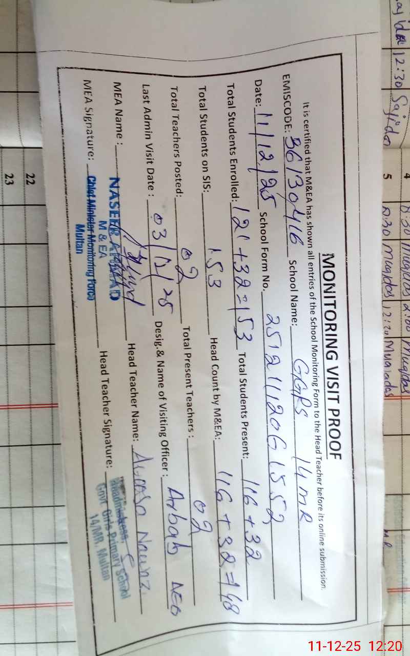 | EMIS Code: 36130416 | Name of School: GGPS 14 MR MULTAN P/O 14 MR | |||