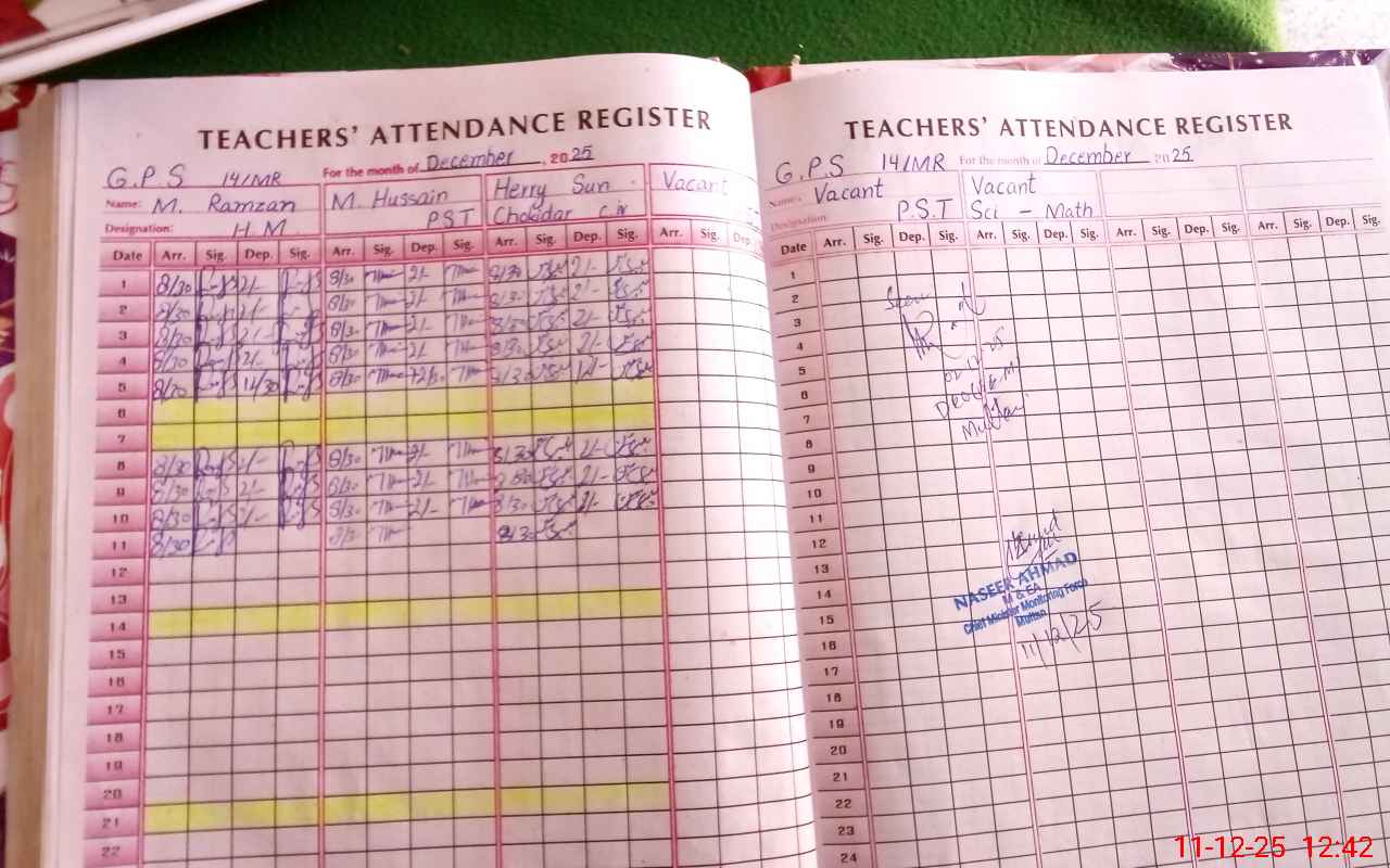 | Attendance Register | Head Teacher | MEA with School | Visit Proof |
