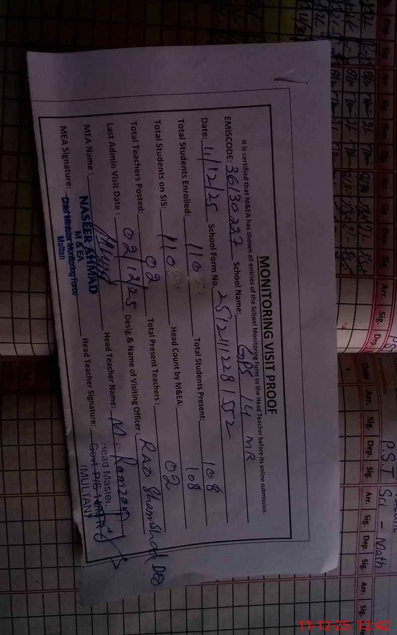 | EMIS Code: 36130227 | Name of School: GPS CHAK NO.14 MR P/O MAKHDOOM RASHID | |||