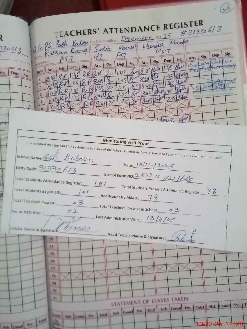 | EMIS Code: 31330613 | Name of School: GGPS BASTI BUBRAN | |||