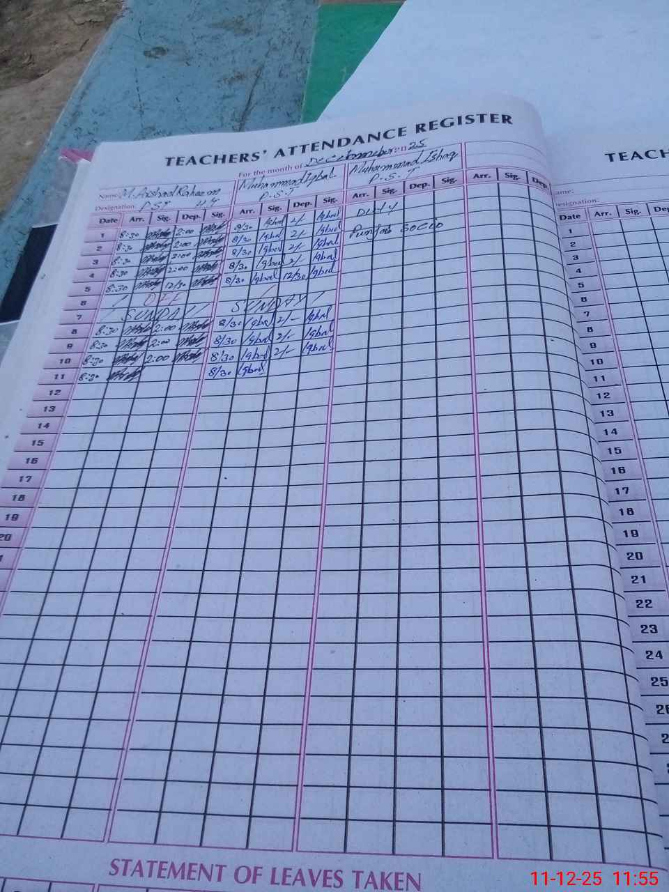 | CNIC | Full Name | Designation | R/C | Absence During Last Calender Month |