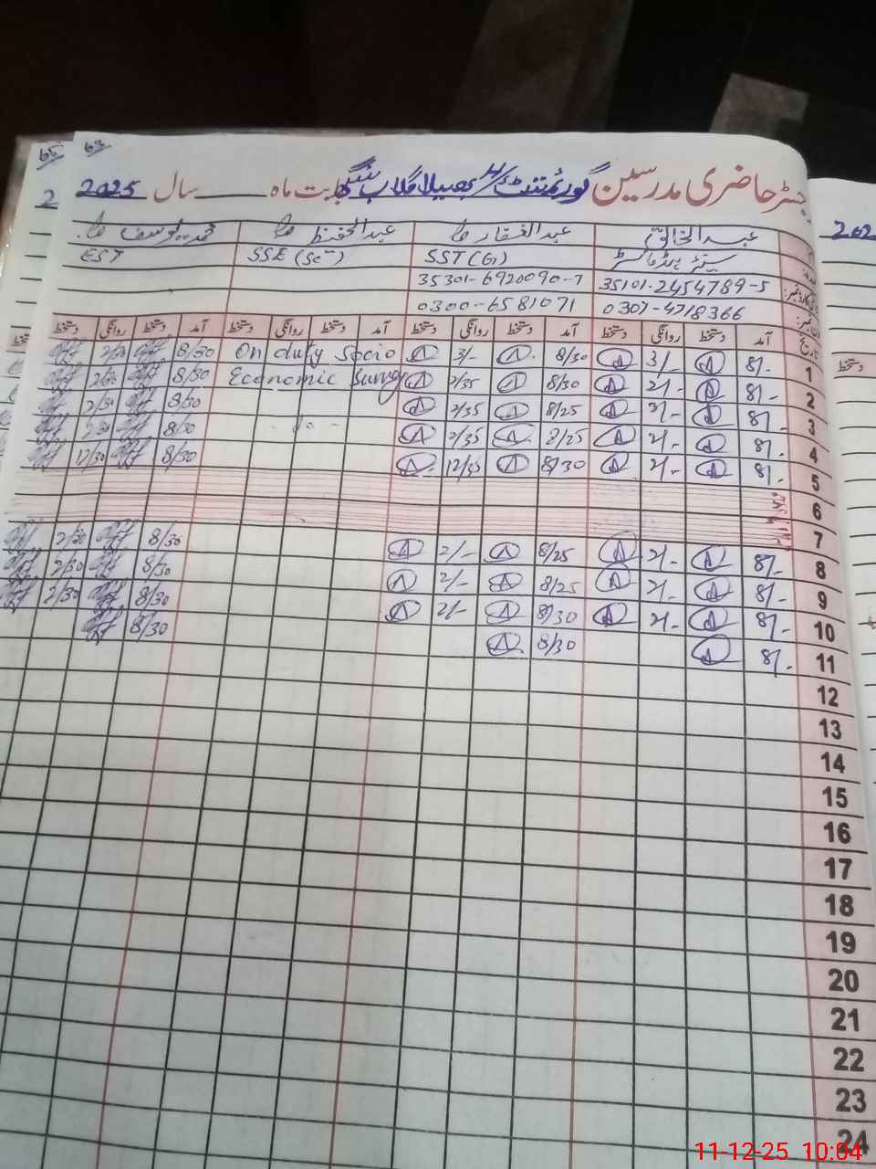| CNIC | Full Name | Designation | R/C | Absence During Last Calender Month |