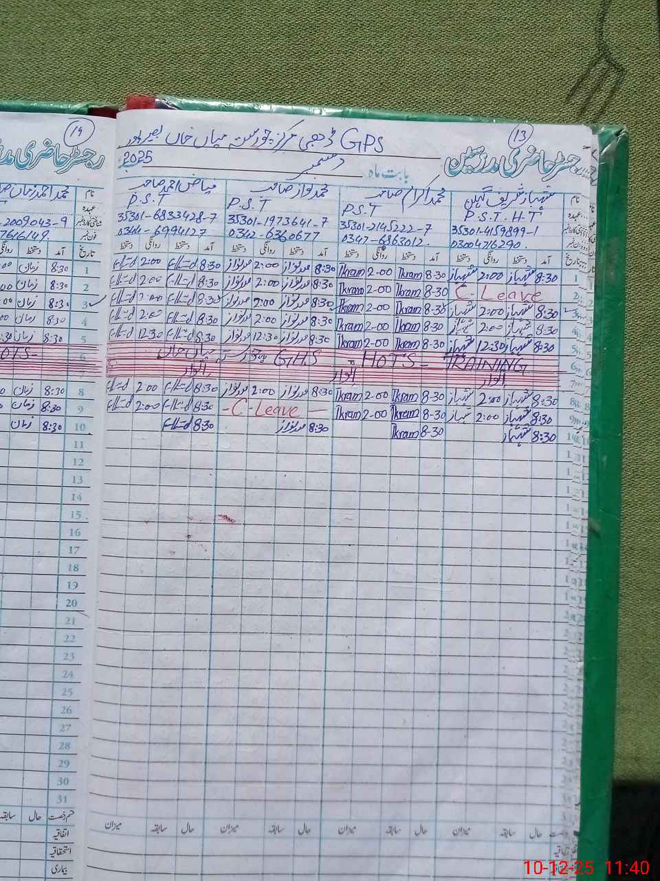 | CNIC | Full Name | Designation | R/C | Absence during last cal. month |