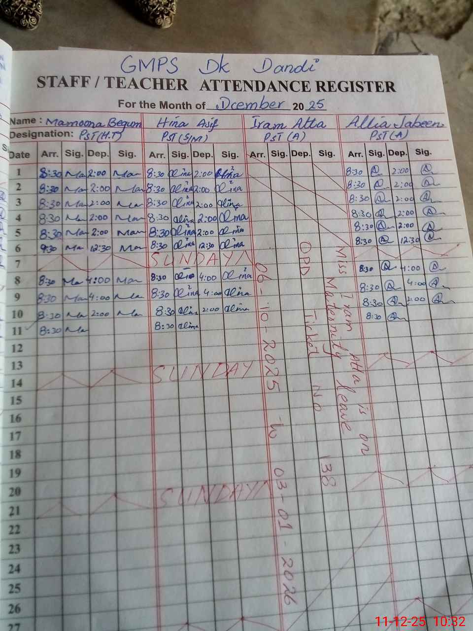 | Leave | Duty | Absent | Maternity | Medical | Ex- Pak |