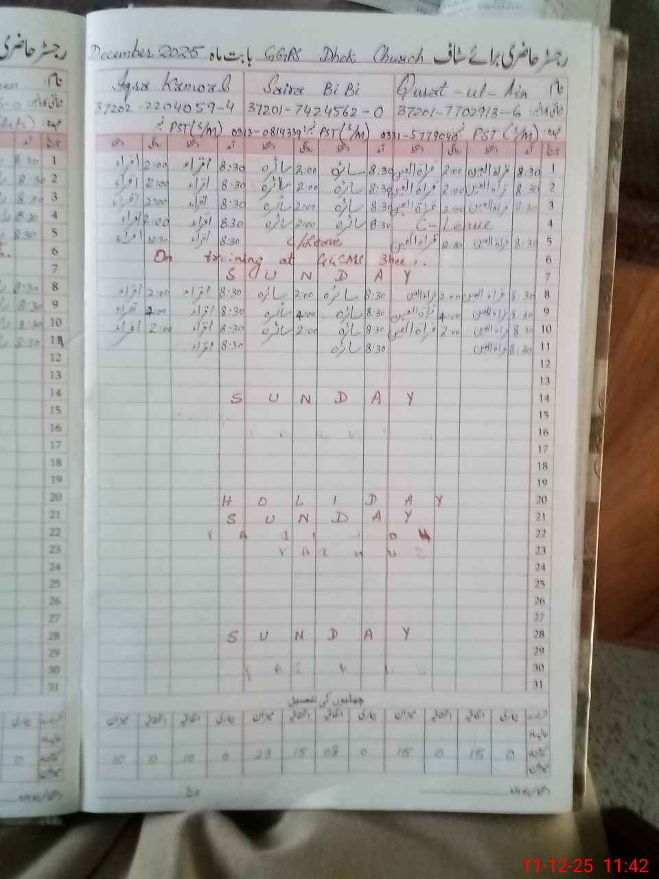 | Name: Qu**** UlAi**** Designation: (School Headmaster's/Headmistress's) HEADMISTRESS Phone/Cell Number: 03**** |