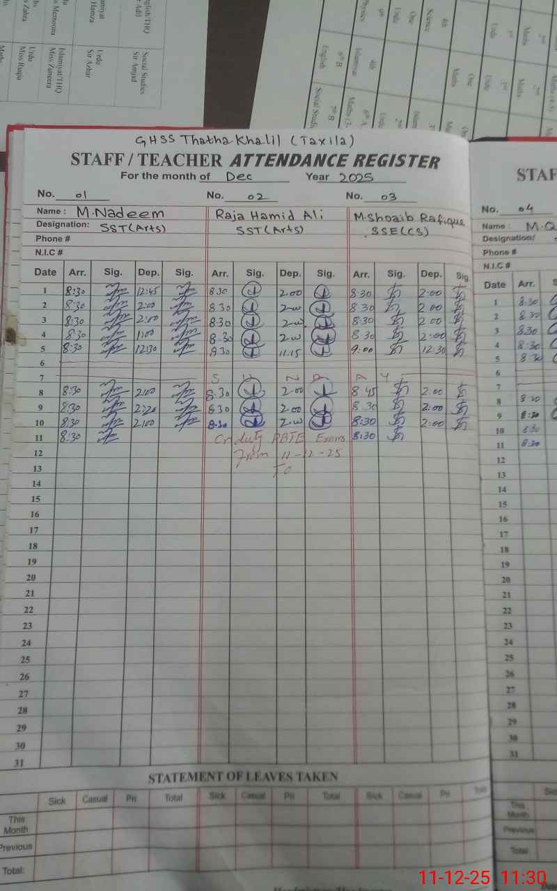 | 37**** | Ra**** Ha**** Al**** | SST Arts | Regular | 0 | 0 | 0 | 0 | 0 | 0 | 0 | 0 | 0 | Exam Duty |