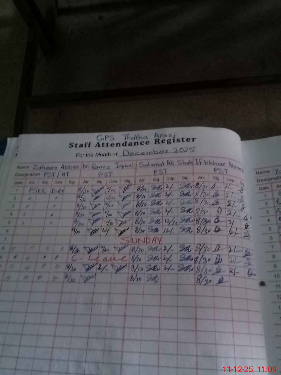 | CNIC | Full Name | Designation | R/C | Absence During Last Calender Month |