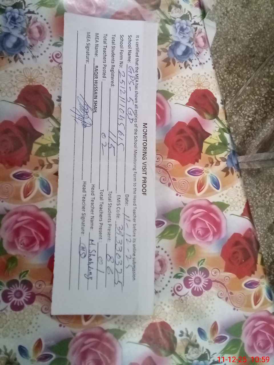 | Attendance Register | Head Teacher | MEA with School | Visit Proof |