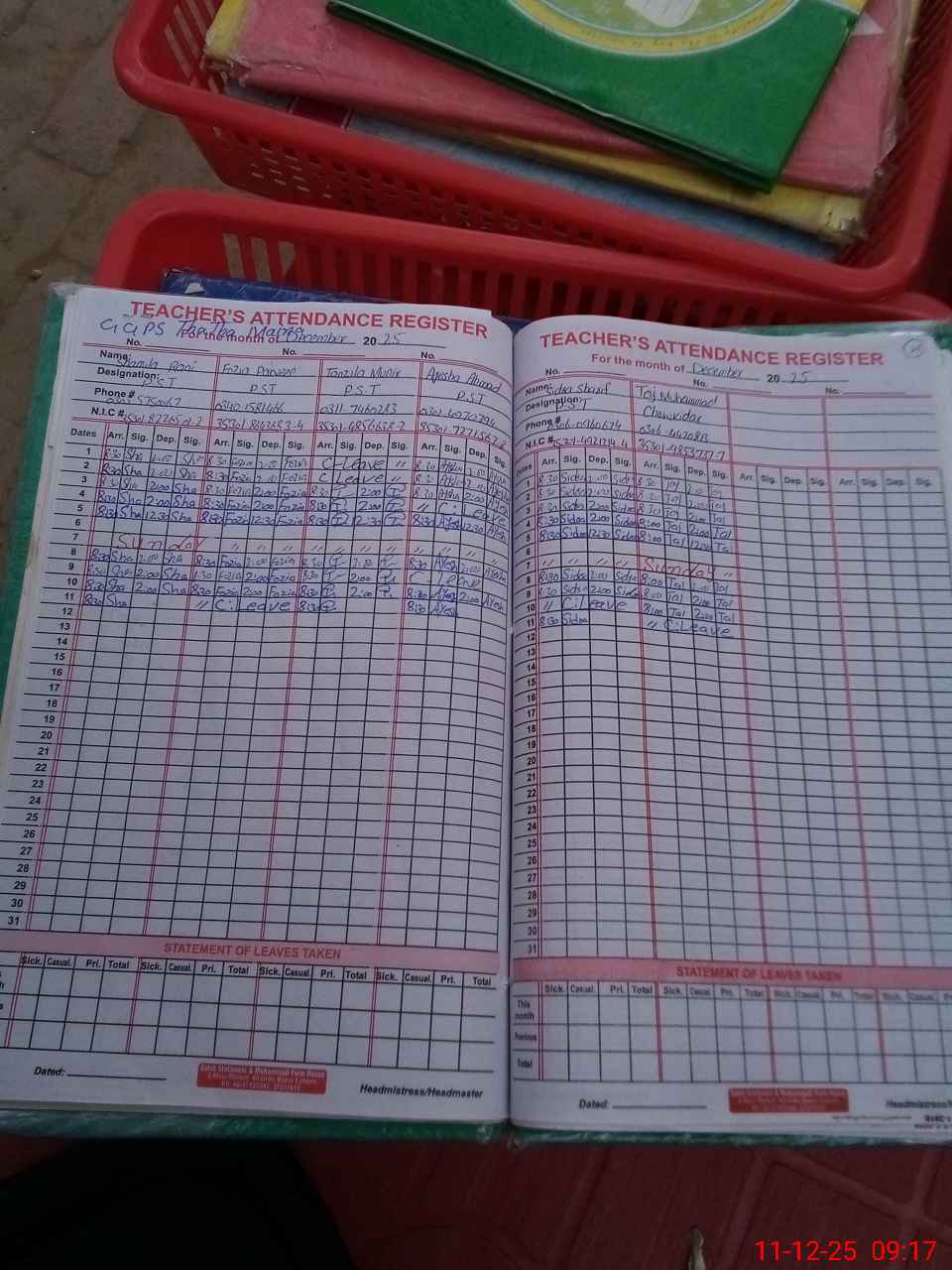 | CNIC | Full Name | Designation | R/C | Absence During Last Calender Month |