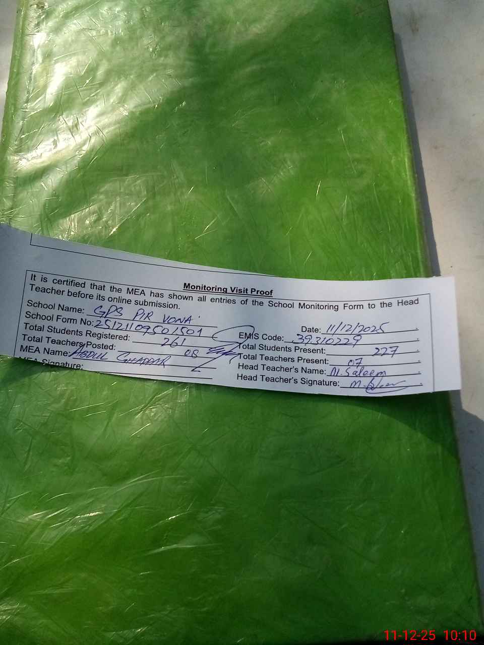| EMIS Code: 39310229 | Name of School: GPS PIR VONA | |||