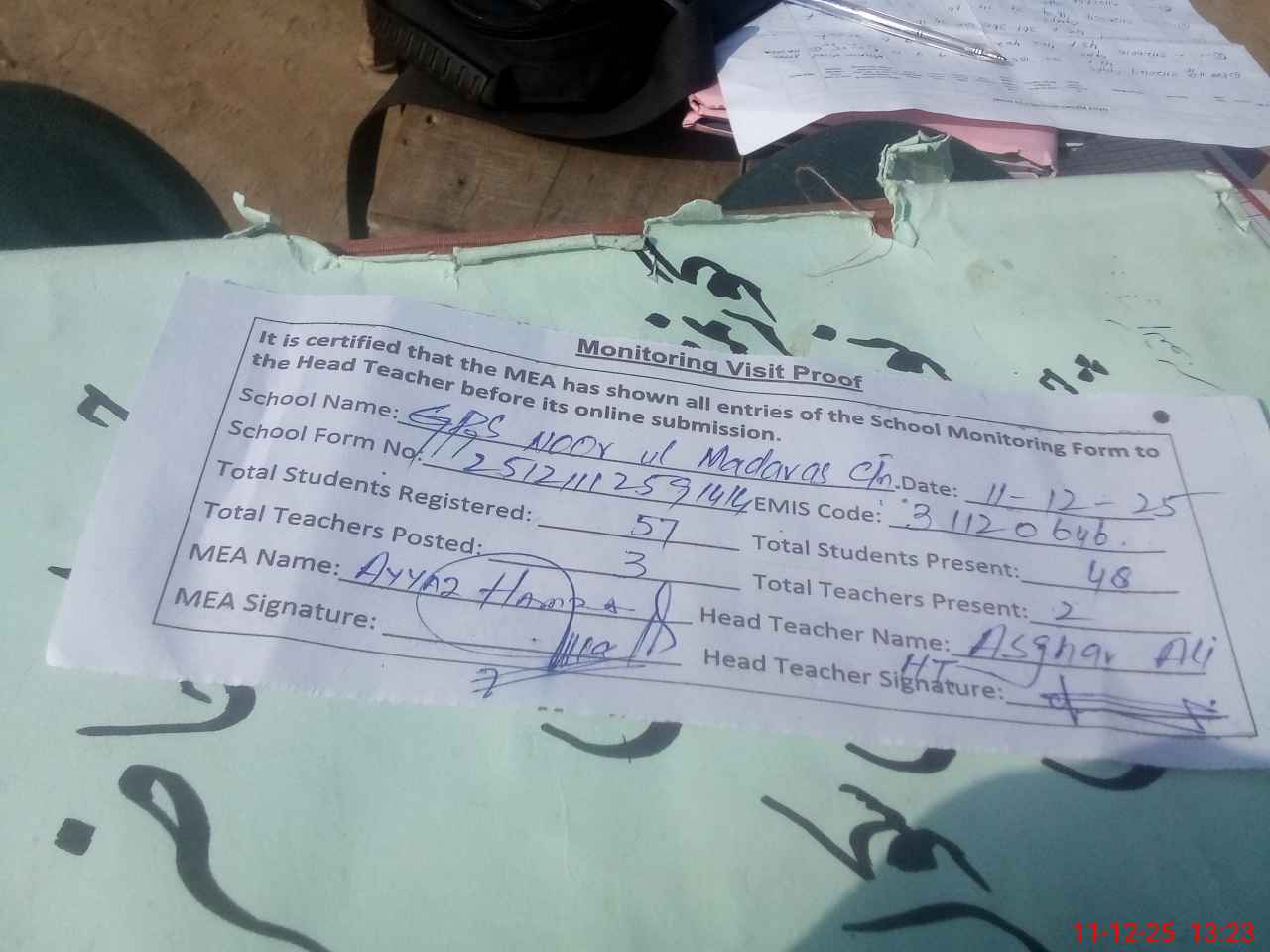 | EMIS Code: 31120646 | Name of School: GPS NOOR UL MADARSS | |||