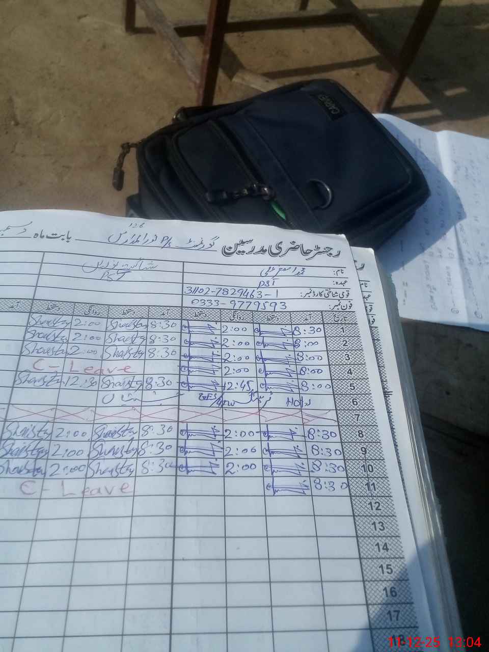 | Remarks (Use Separate Page if Required): Roznamcha is not prepared today Silslla No not mentioned on students attendence registers No attendence mentioned on students attendence registers today No Tab with Head Teacher in such School NSB record not shown to MEA | |||||