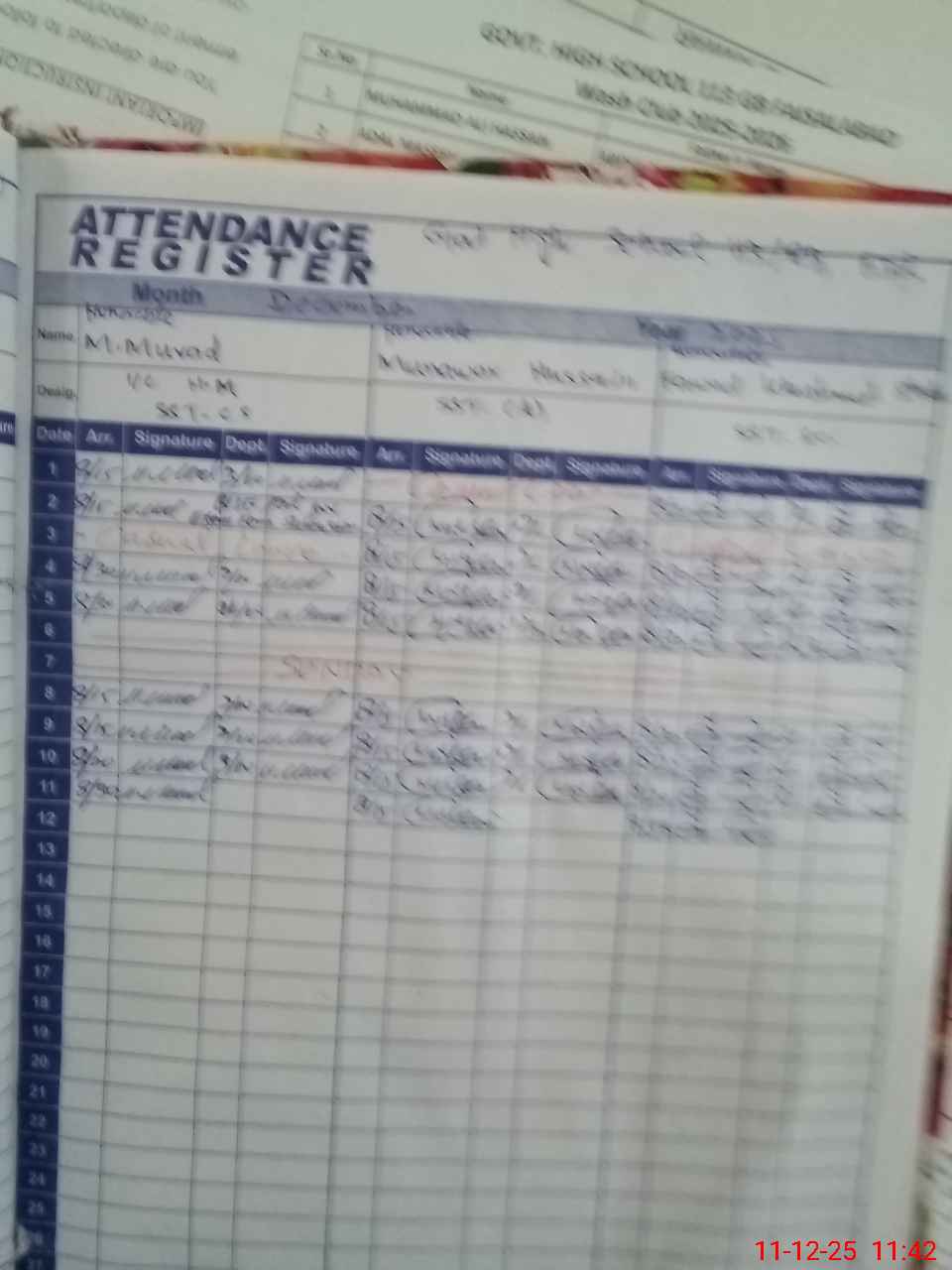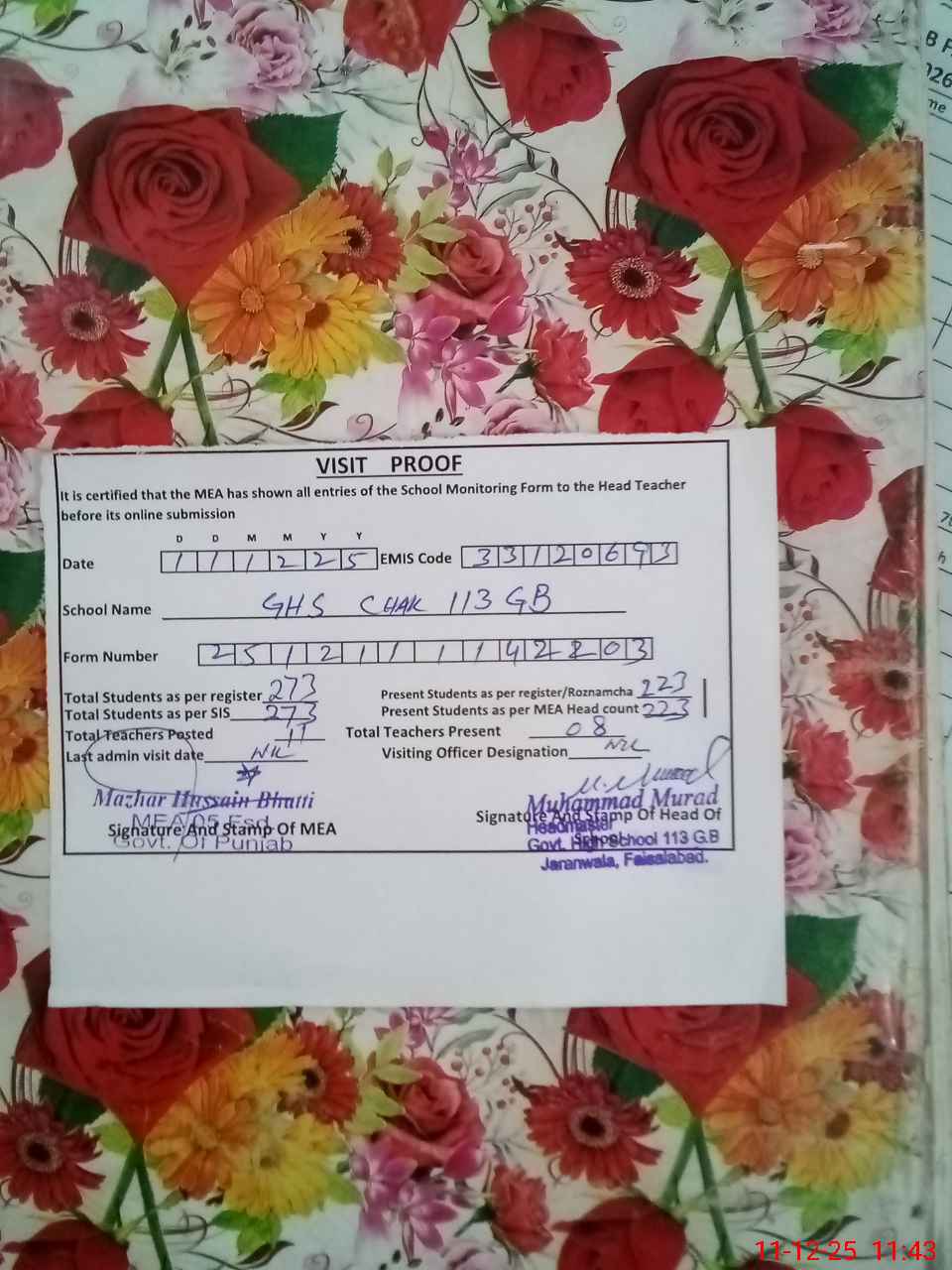 | Attendance Register | Head Teacher | MEA with School | Visit Proof |