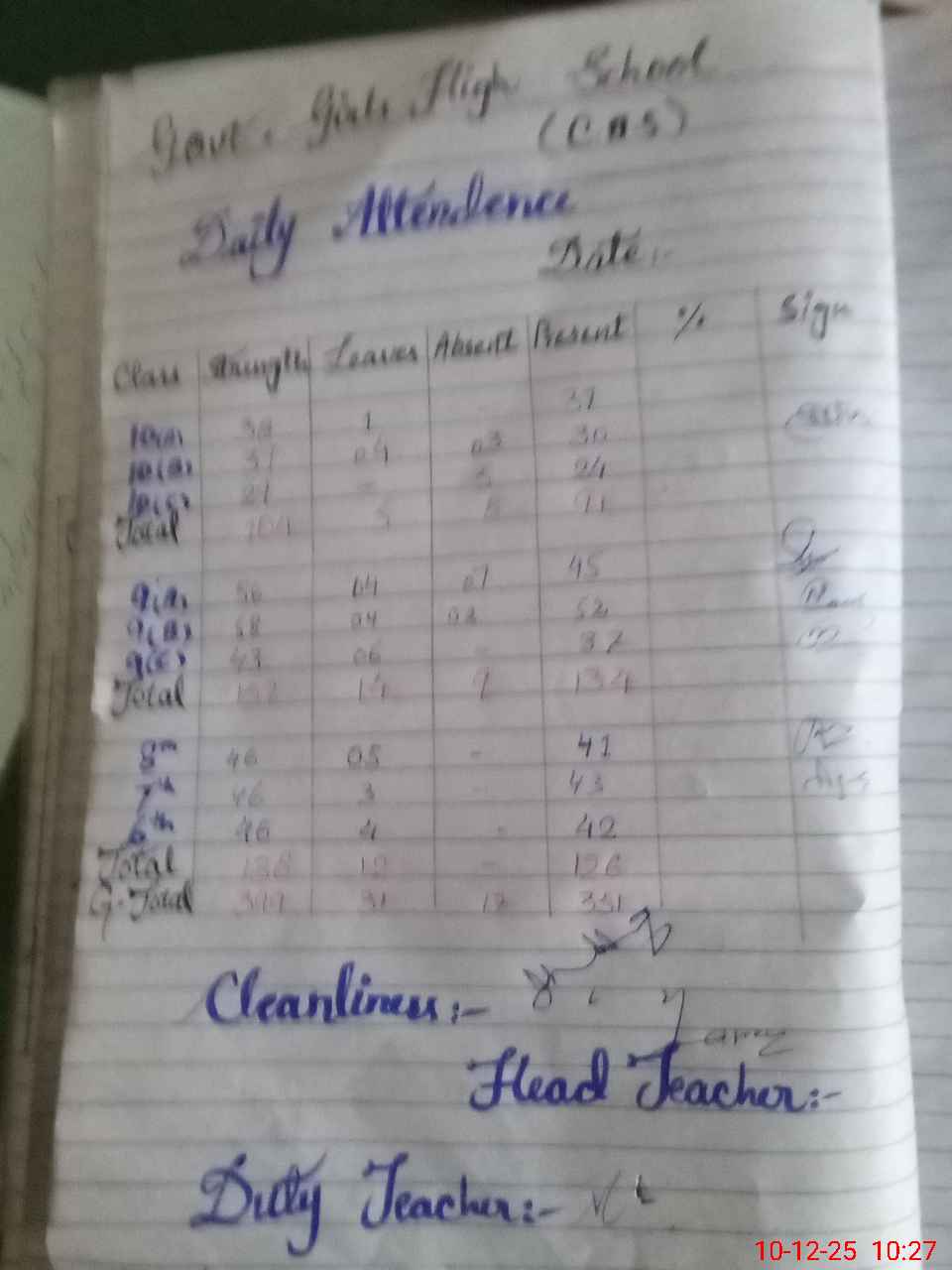 | No. of Students Present - Female | 0 | 0 | 0 | 0 | 0 | 0 | 0 | 42 | 43 | 41 | 134 | 91 | 351 | |||