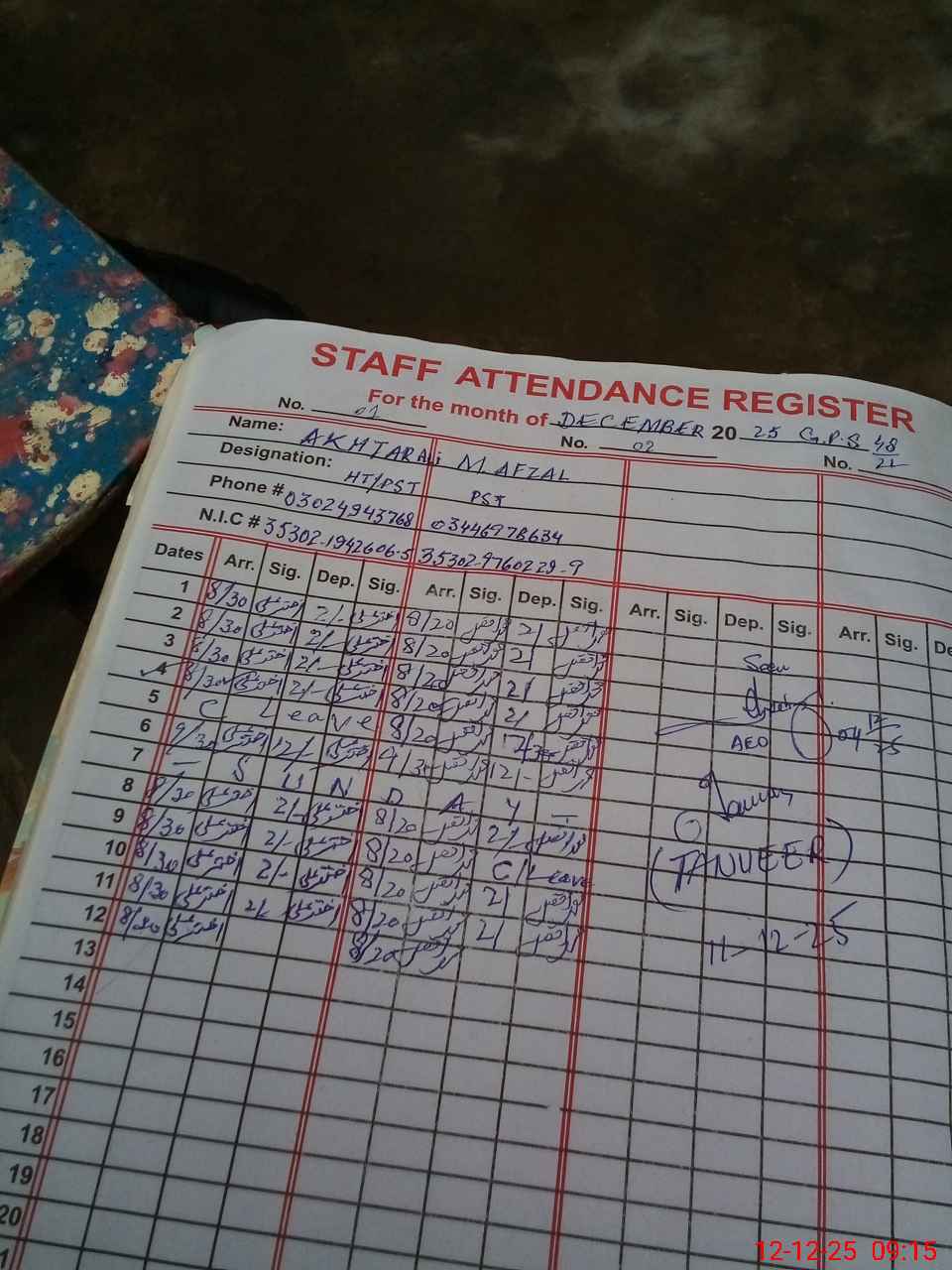 | Name: Ak**** Al**** Designation: (School Headmaster's/Headmistress's) PST Phone/Cell Number: 03**** |