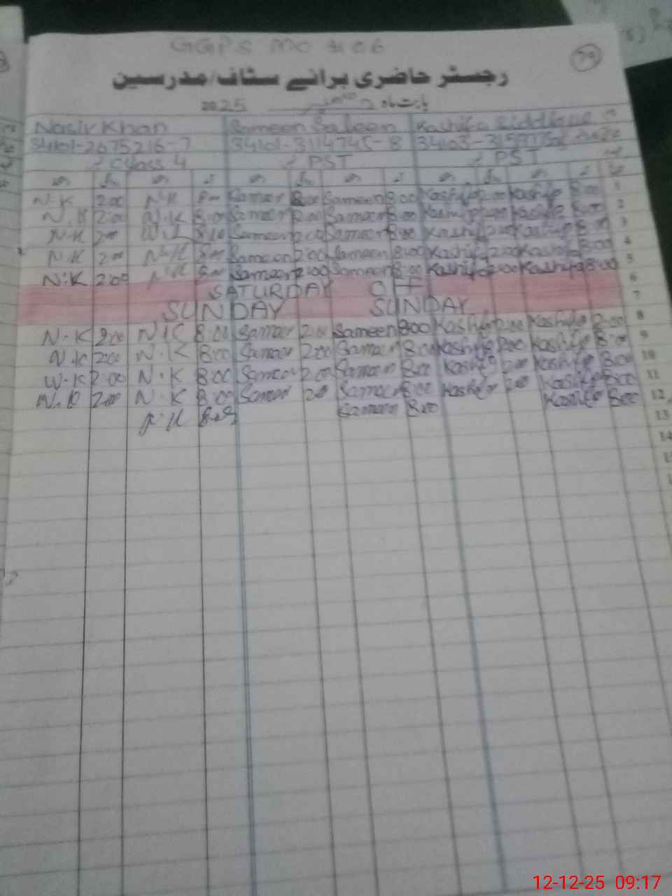 | Name: KA**** SI**** Designation: (School Headmaster's/Headmistress's) PST Phone/Cell Number: 03**** |