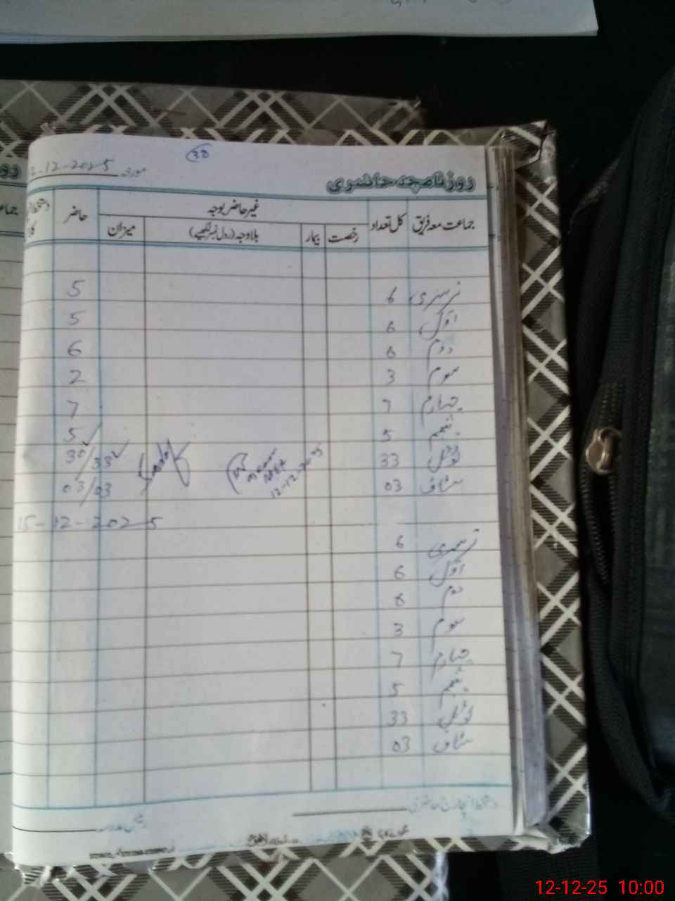 | CNIC | Full Name | Designation | R/C | Absence During Last Calender Month |