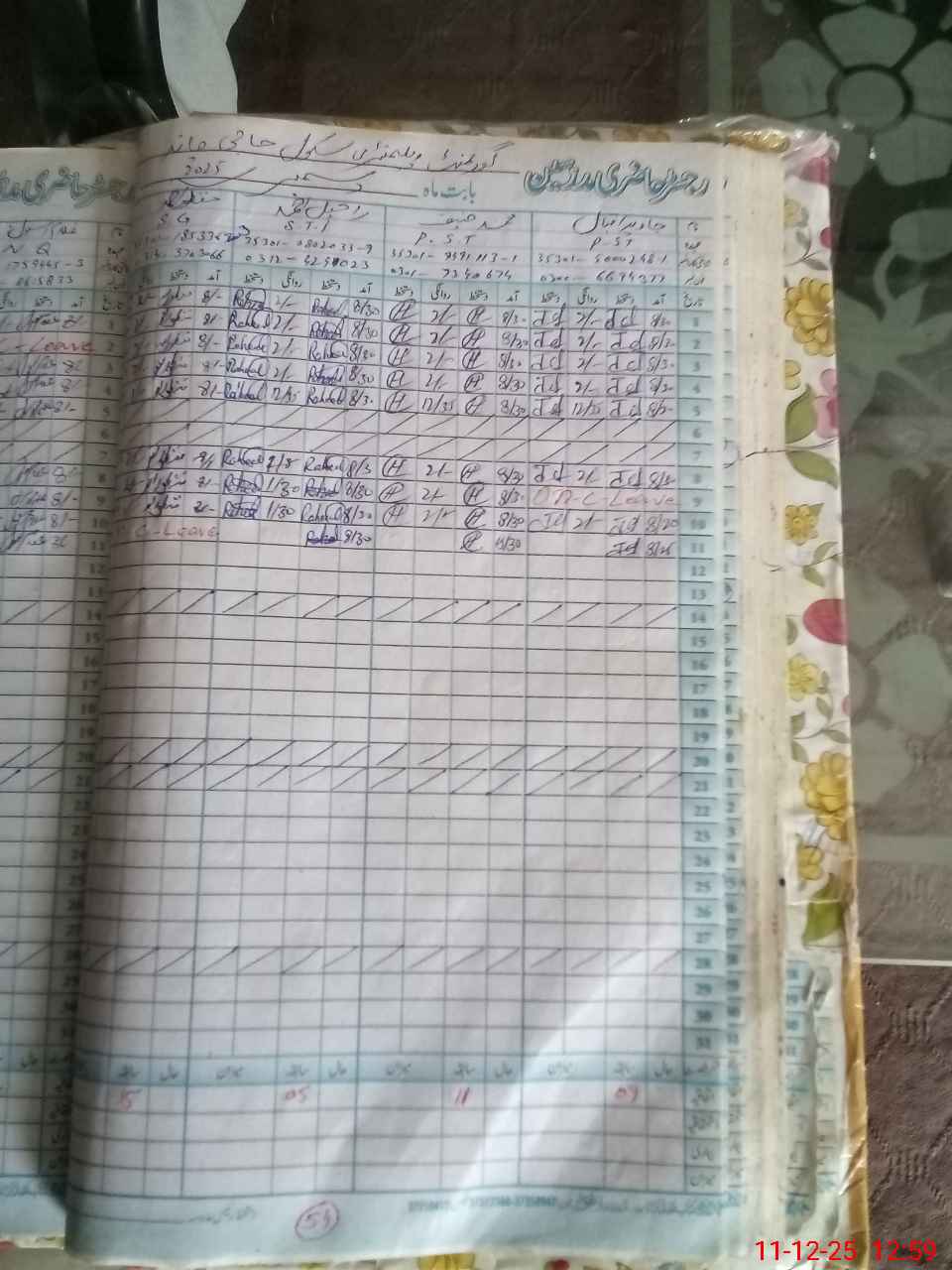 | CNIC | Full Name | Designation | R/C | Absence during last cal. month |