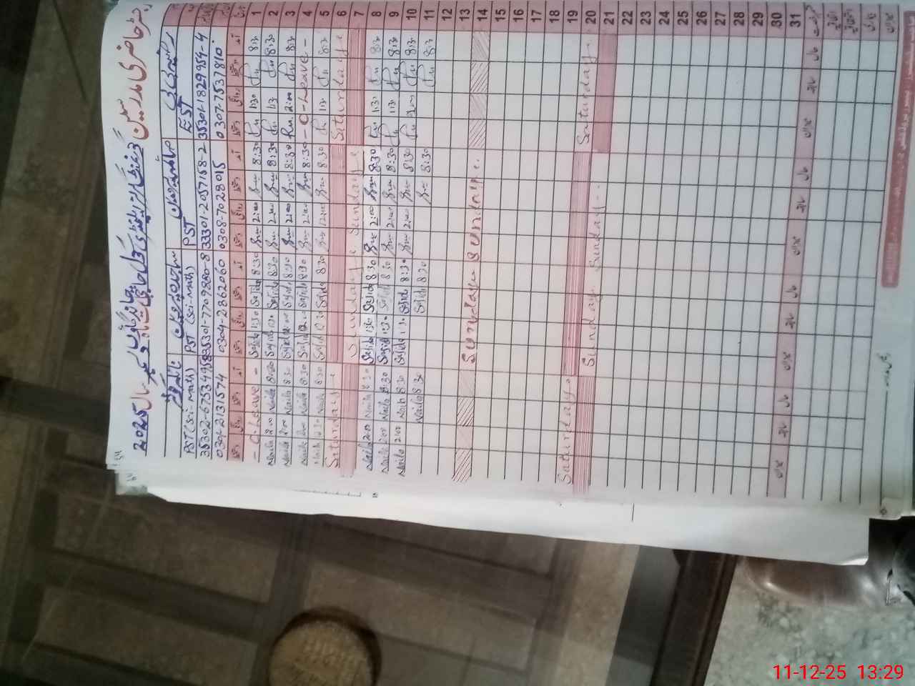 | CNIC | Full Name | Designation | R/C | Absence During Last Calender Month |