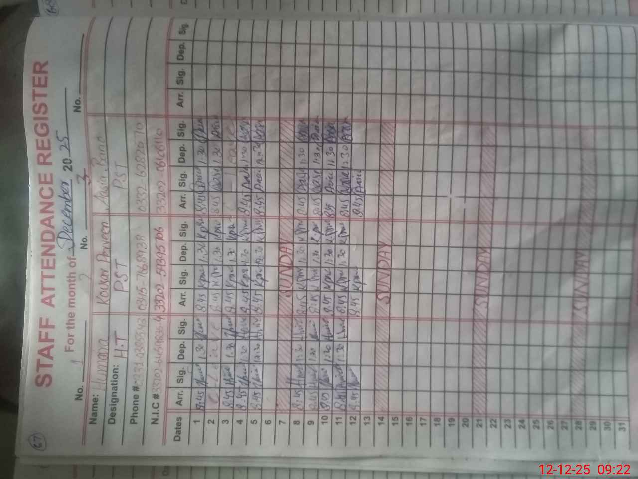 | Name: Hu**** Ra**** Designation: (School Headmaster's/Headmistress's) PST Phone/Cell Number: 03**** |