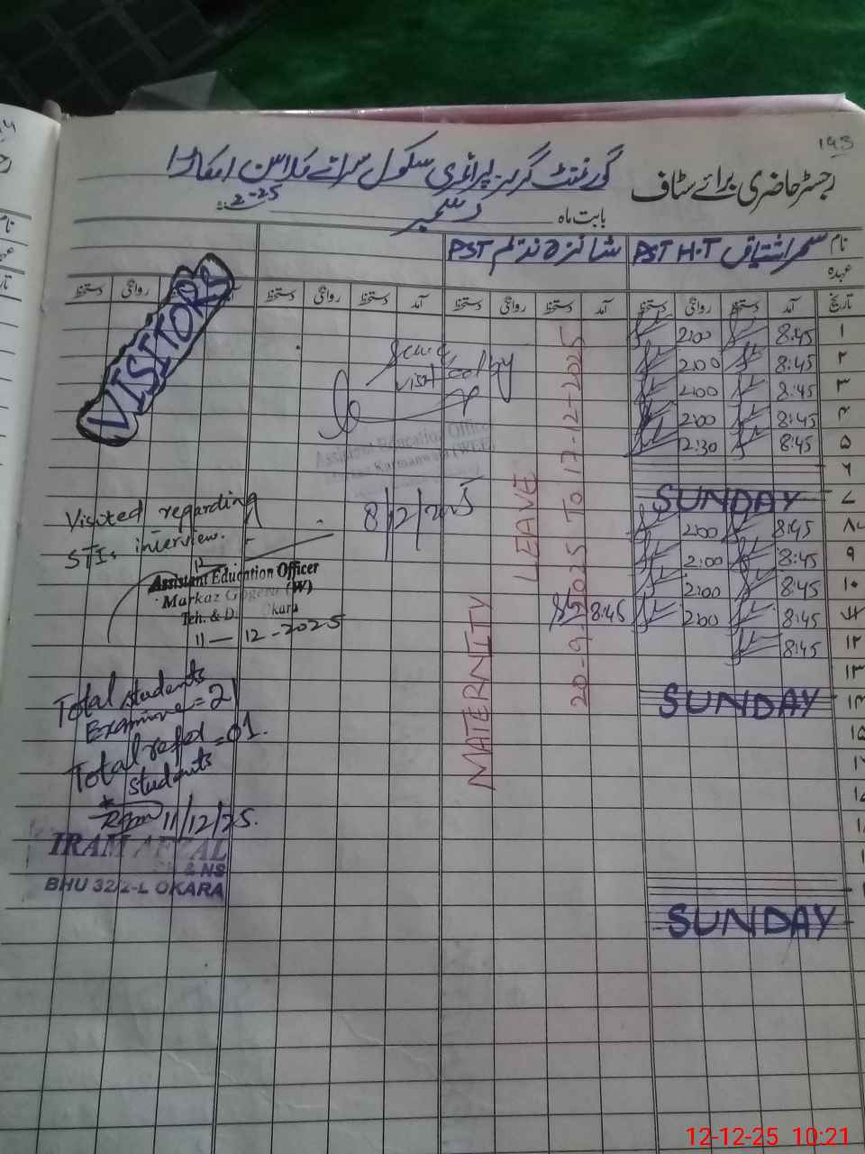 | 35**** | Sh**** Na**** | PST | Regular | 30 | 0 | 0 | 0 | 30 | 0 | 0 | 0 | 0 | Maternity |