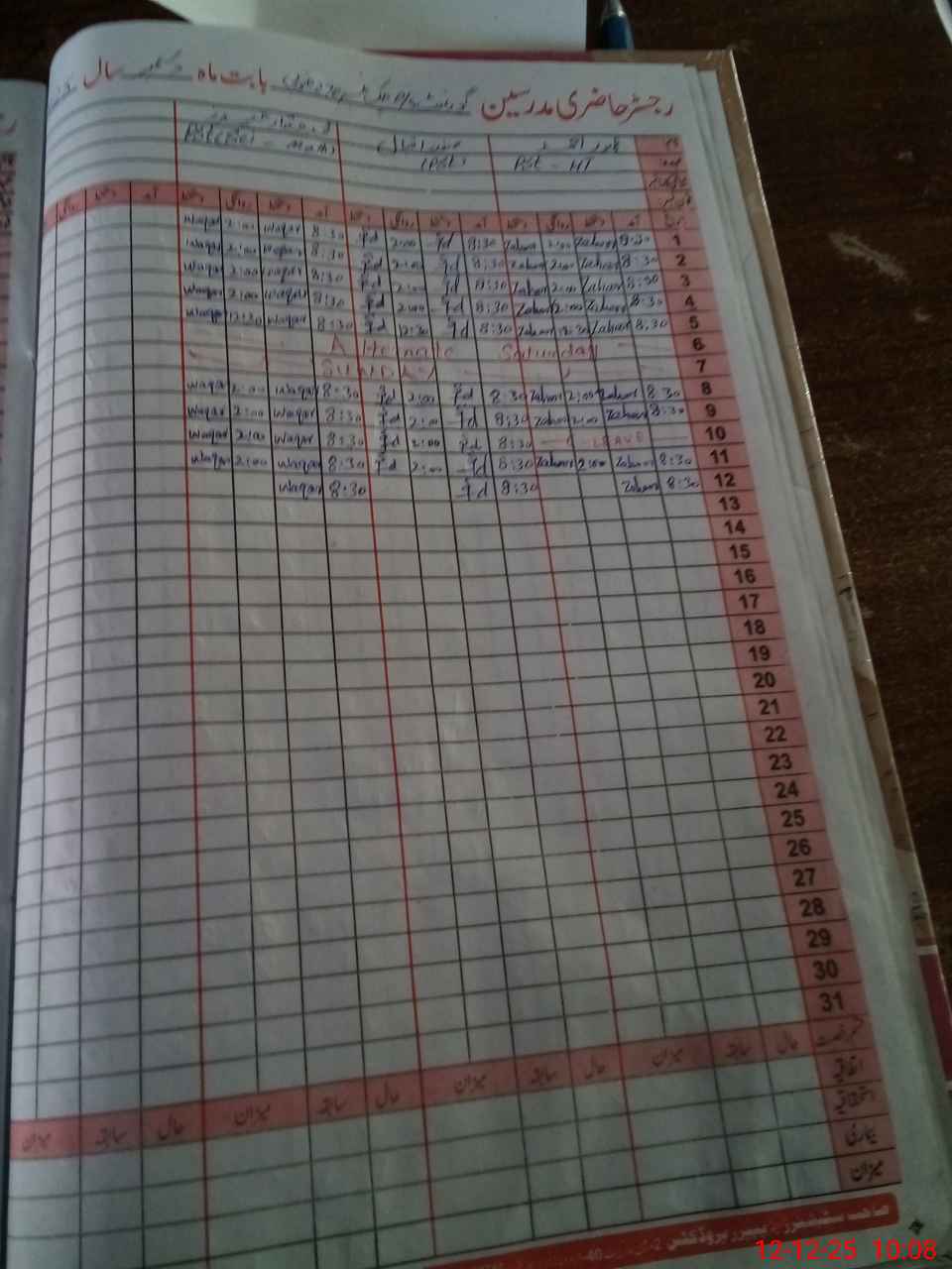| CNIC | Full Name | Designation | R/C | Absence During Last Calender Month |