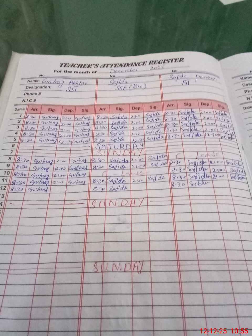 | CNIC | Full Name | Designation | R/C | Absence During Last Calender Month |