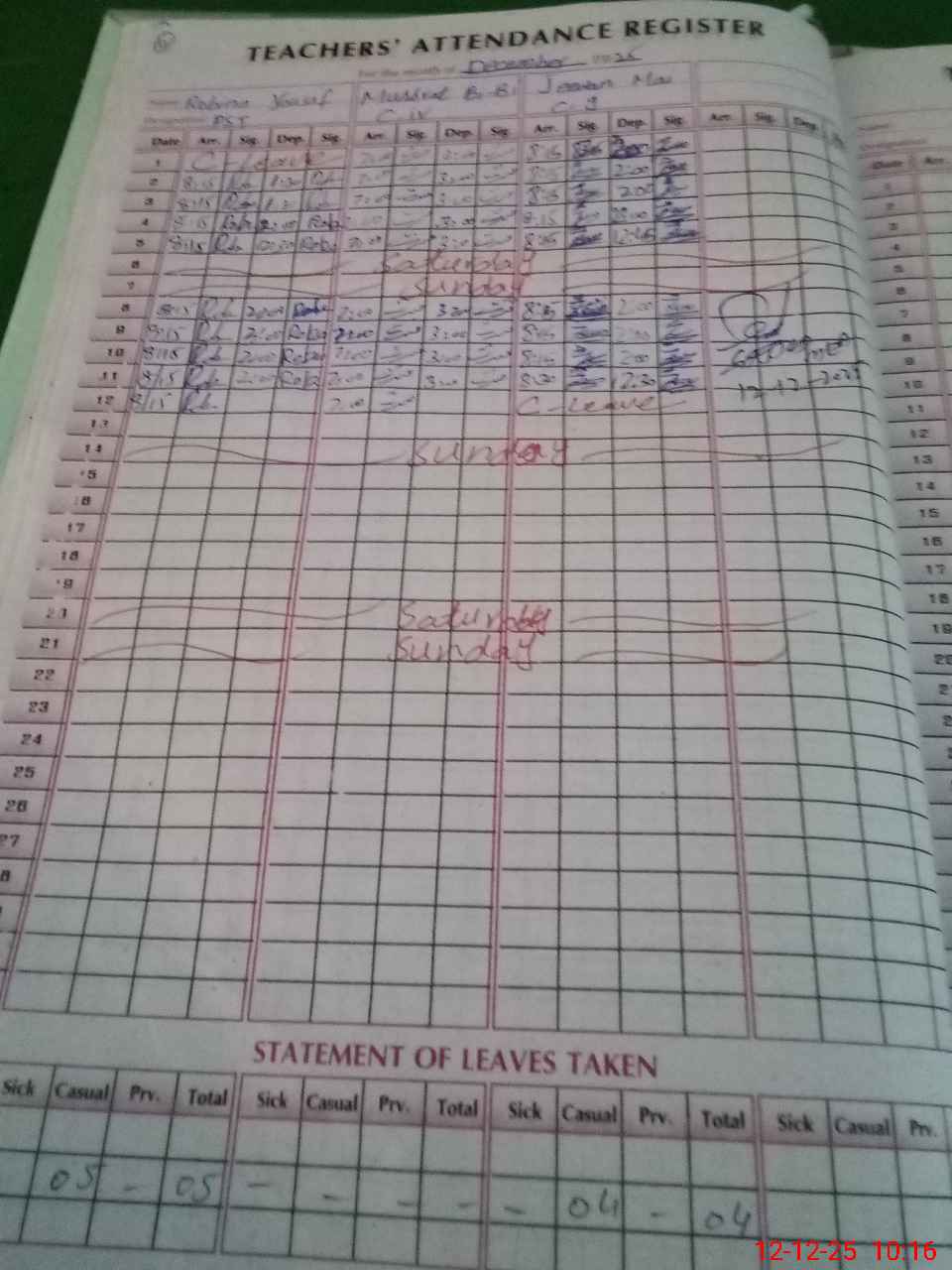 | Leave | Duty | Absent | Maternity | Medical | Ex- Pak |