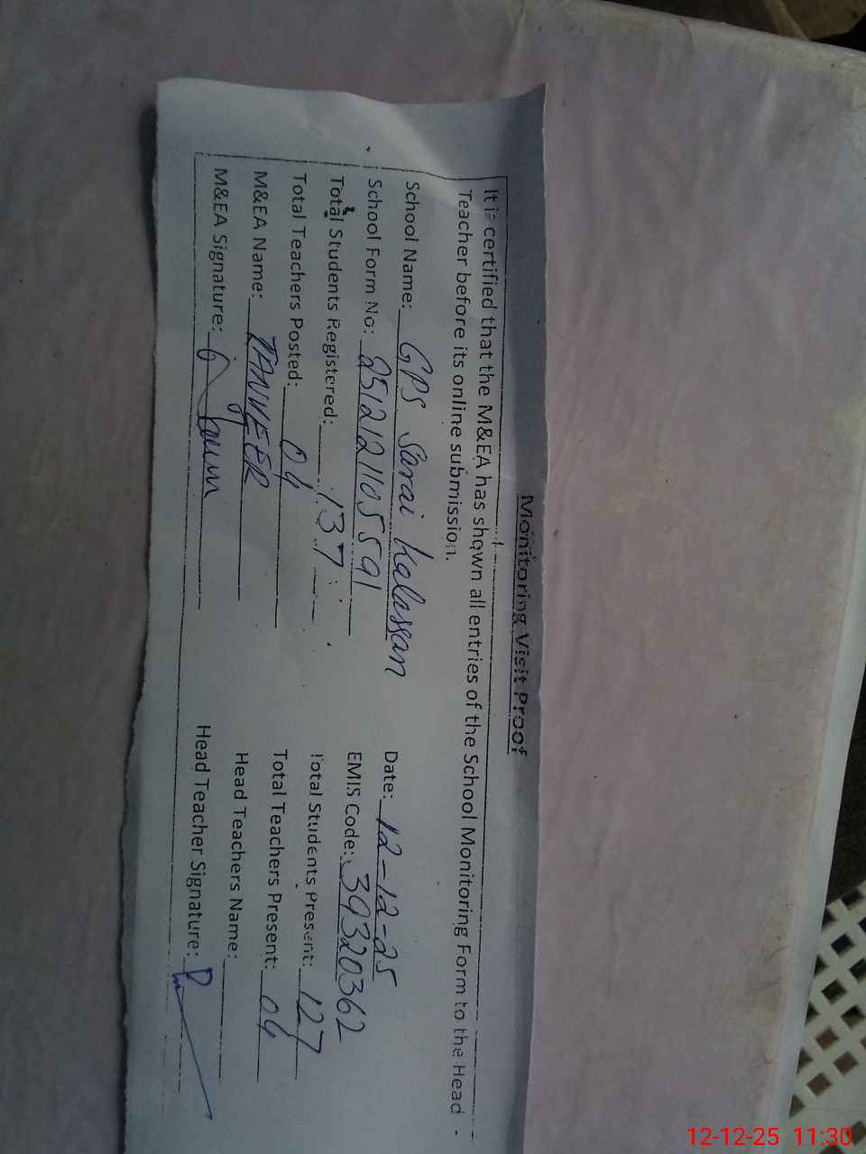 | EMIS Code: 39320362 | Name of School: GPS SARAI KALASAN | |||