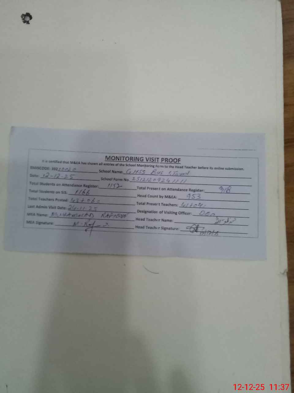 | EMIS Code: 39210020 | Name of School: GHSS BUS STAND PAKPATTAN | |||