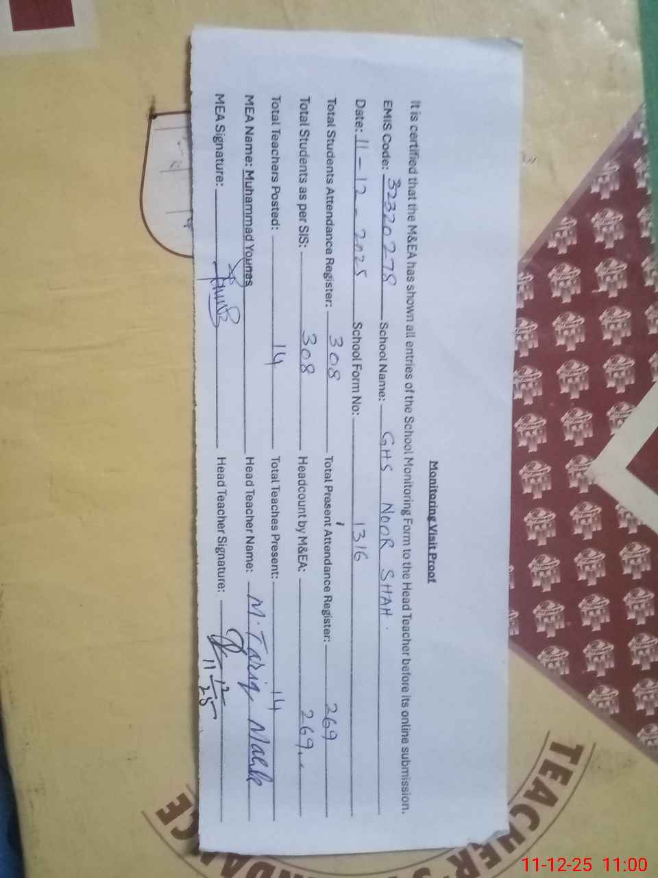 | EMIS Code: 32320278 | Name of School: GHS NOOR SHAH | |||