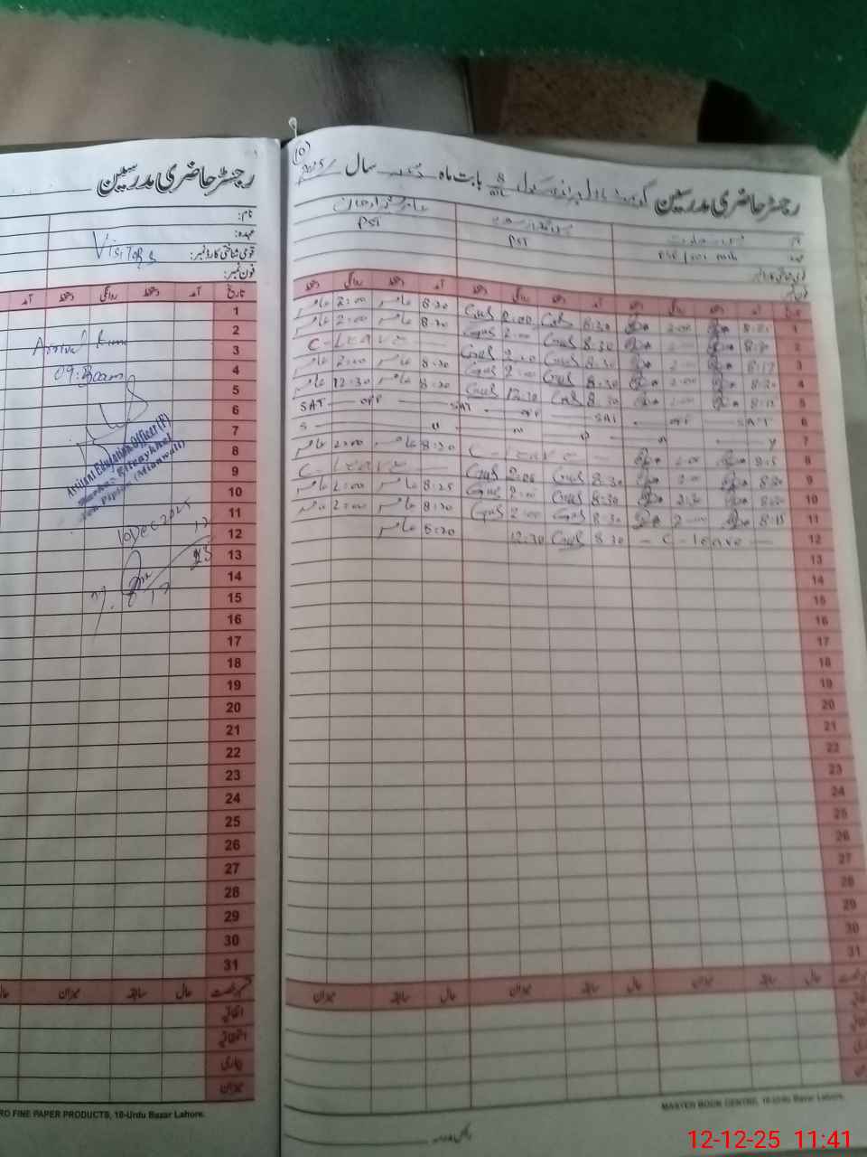 | CNIC | Full Name | Designation | R/C | Absence During Last Calender Month |