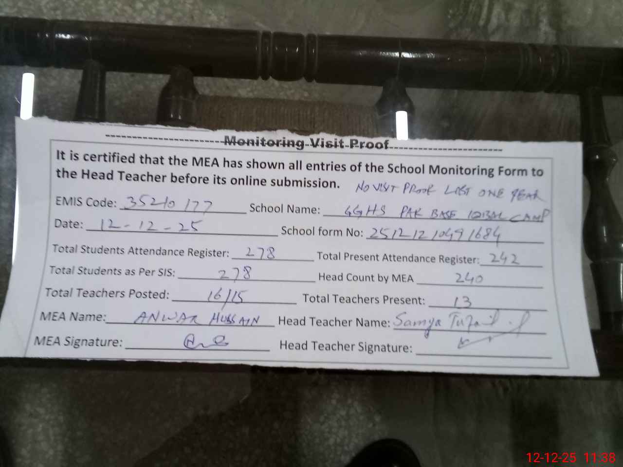 | EMIS Code: 35210177 | Name of School: GGHS PAF BASE IQBAL CAMP LAHORE | |||