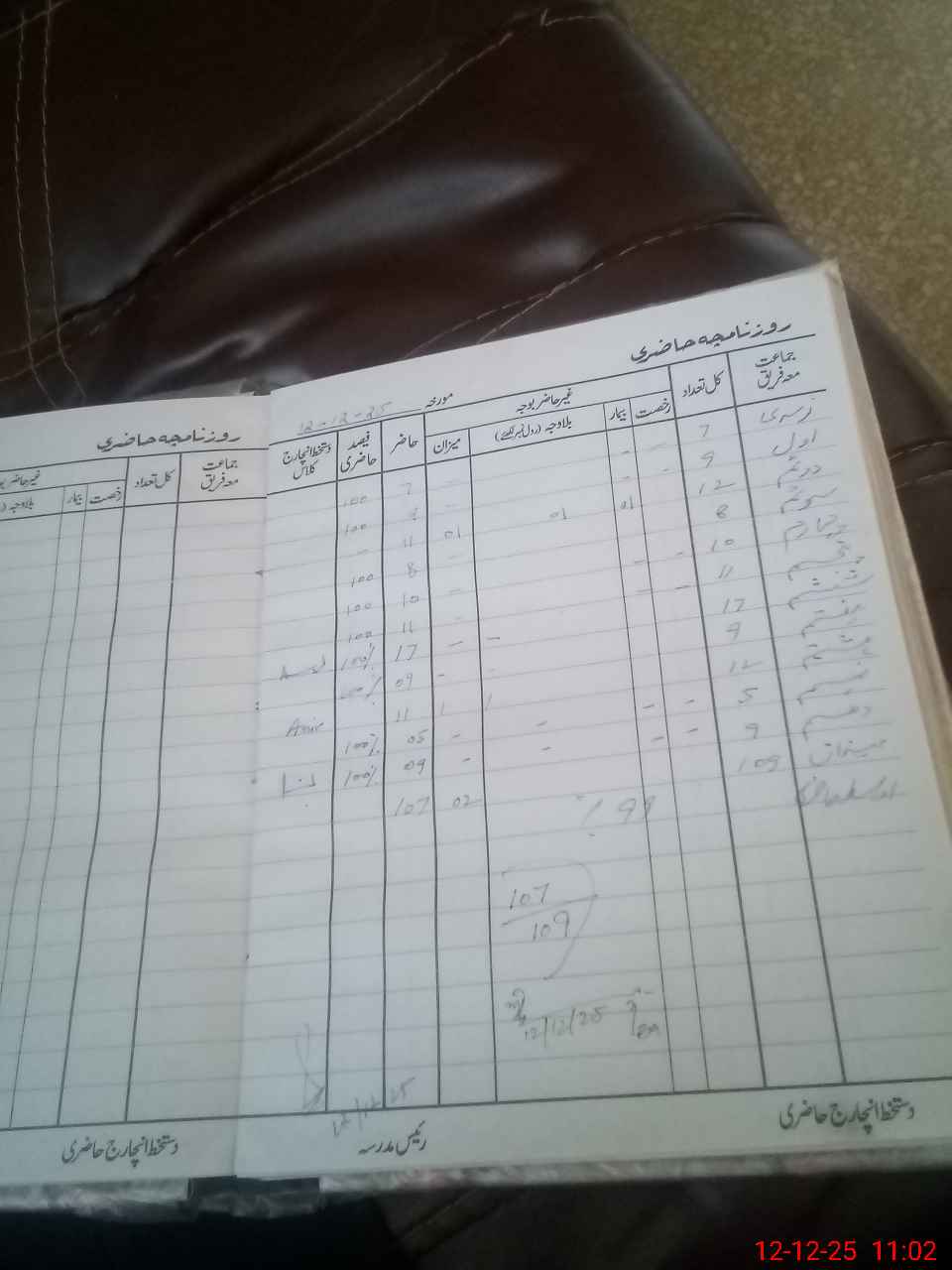 | Total Students Present | 0 | 0 | 9 | 11 | 7 | 10 | 11 | 17 | 9 | 12 | 5 | 9 | 107 | |||