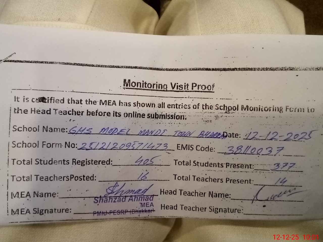| EMIS Code: 38110037 | Name of School: GHS MODEL MANDI TOWN BHAKKAR | |||