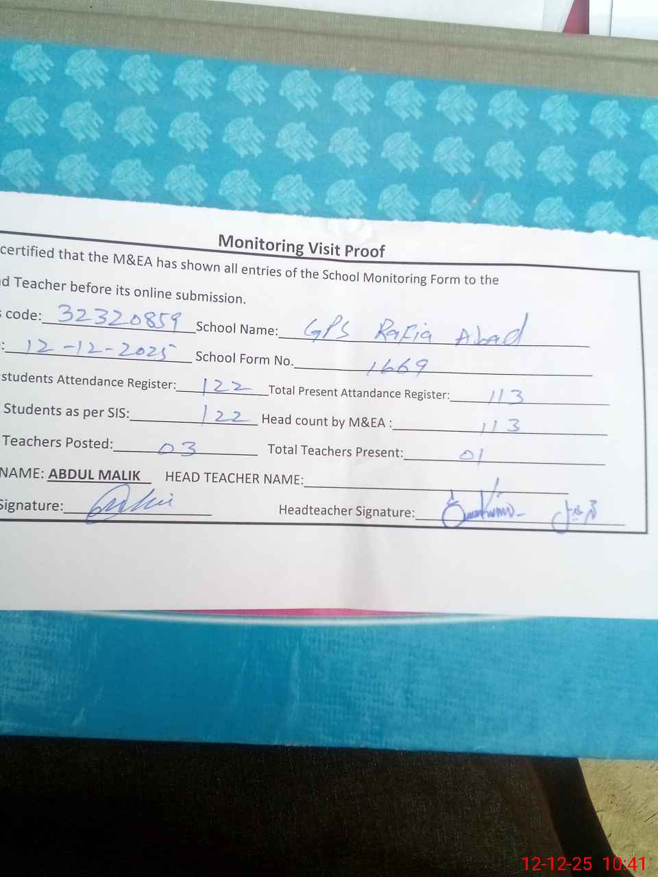 | EMIS Code: 32320859 | Name of School: GPS RAFIA ABAD | |||
