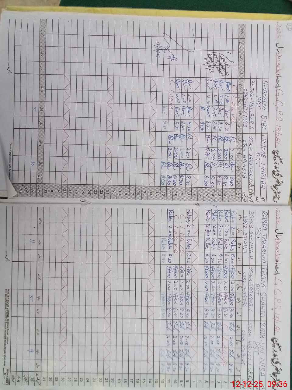 | CNIC | Full Name | Designation | R/C | Absence During Last Calender Month |