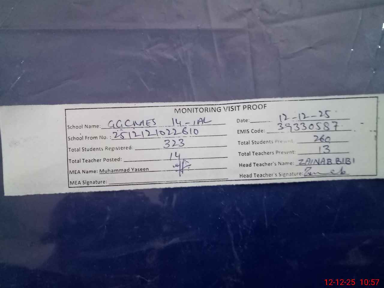| Monitoring Date: 12-12-2025 | Start Time: 12-12-2025 10:22 AM | End Time: 12-12-2025 10:58 AM | Name of MEA: MU**** YA**** | |