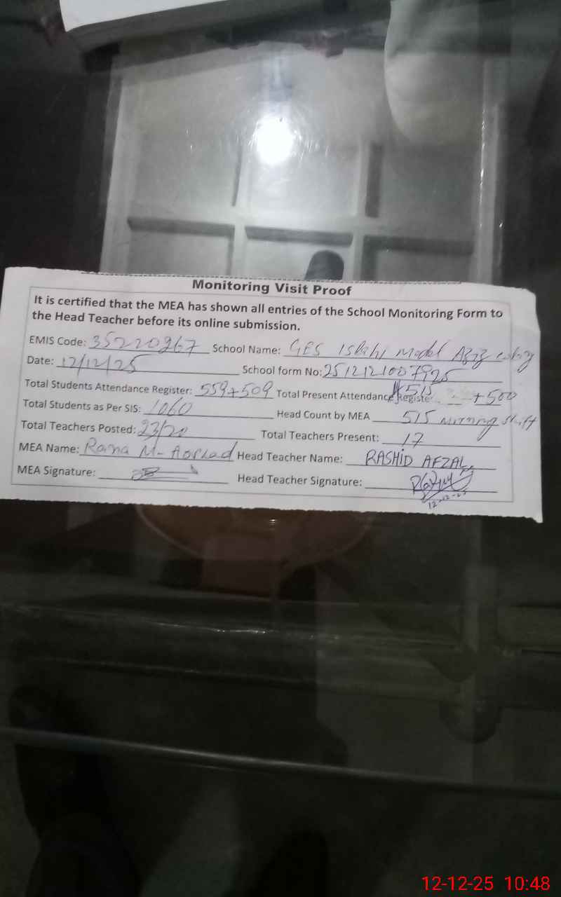 | EMIS Code: 35220267 | Name of School: GES ISLAHI MODEL AZIZ COLONY YOUSAF PARK SHAHDARA | |||