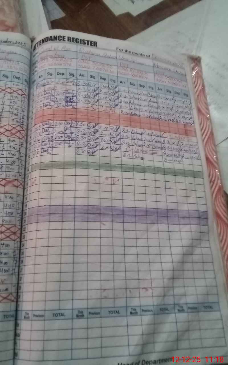 | CNIC | Full Name | Designation | R/C | Absence During Last Calender Month |