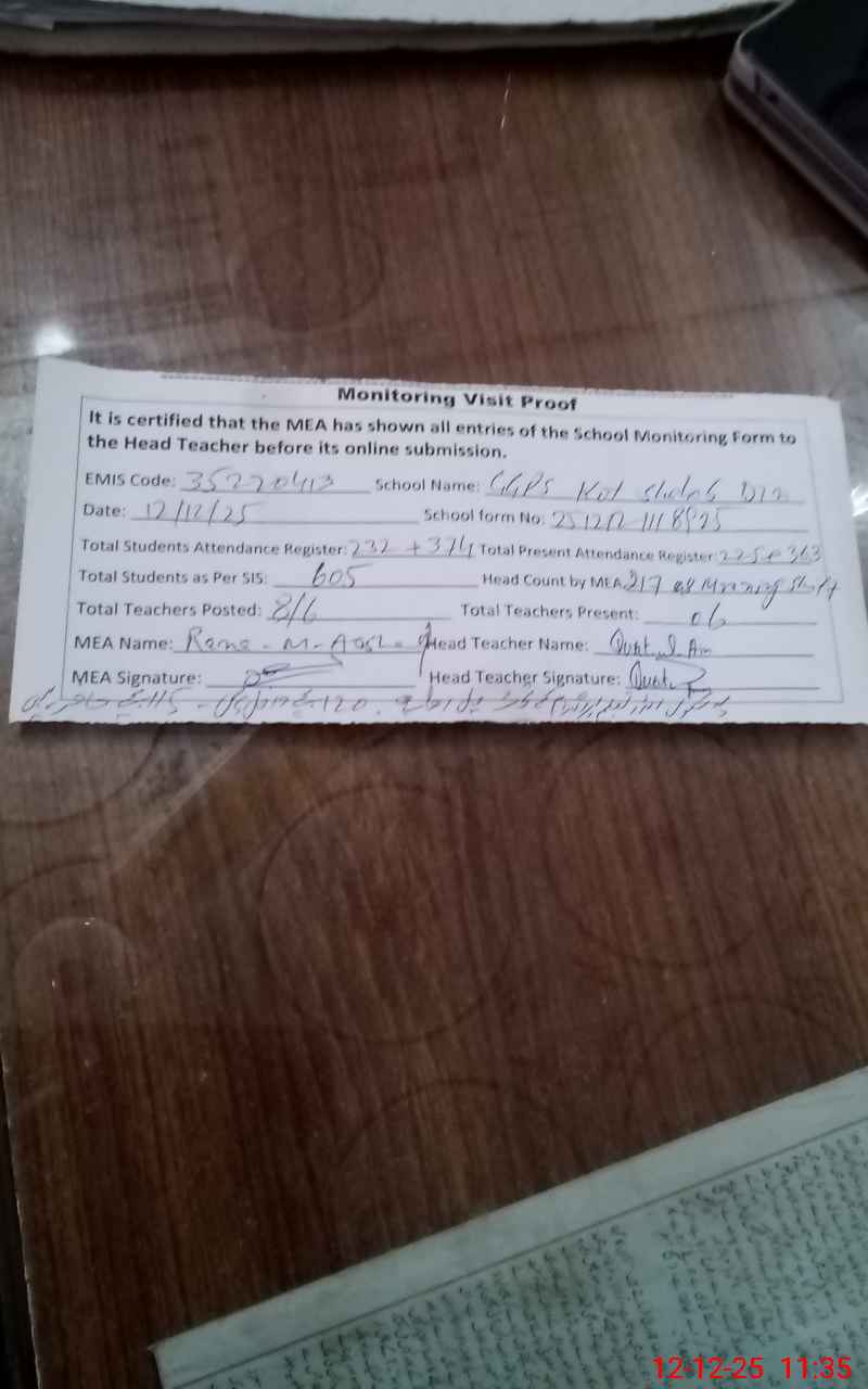 | EMIS Code: 35220413 | Name of School: GGPS KOT SHAHAB DIN | |||