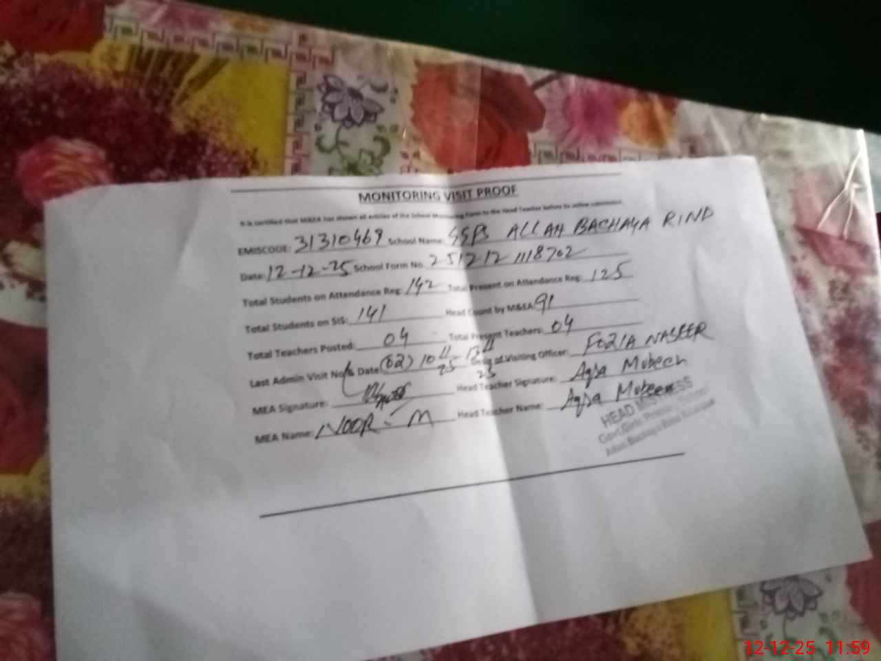 | EMIS Code: 31310469 | Name of School: GGPS ALLA BACHAYA RIND | |||