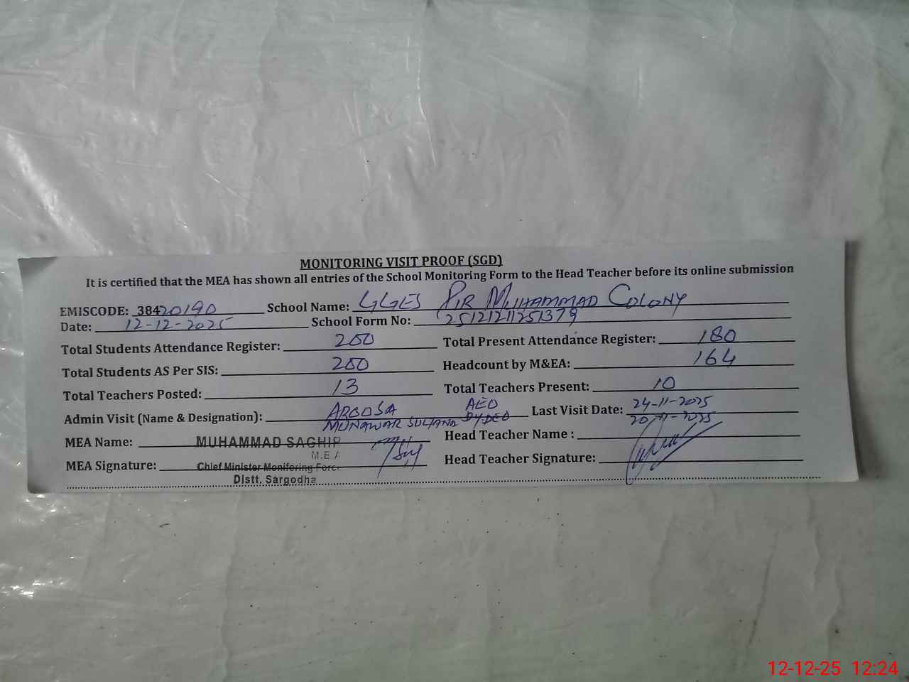 | EMIS Code: 38420190 | Name of School: GGES PIR MUHAMMAD COLONY | |||