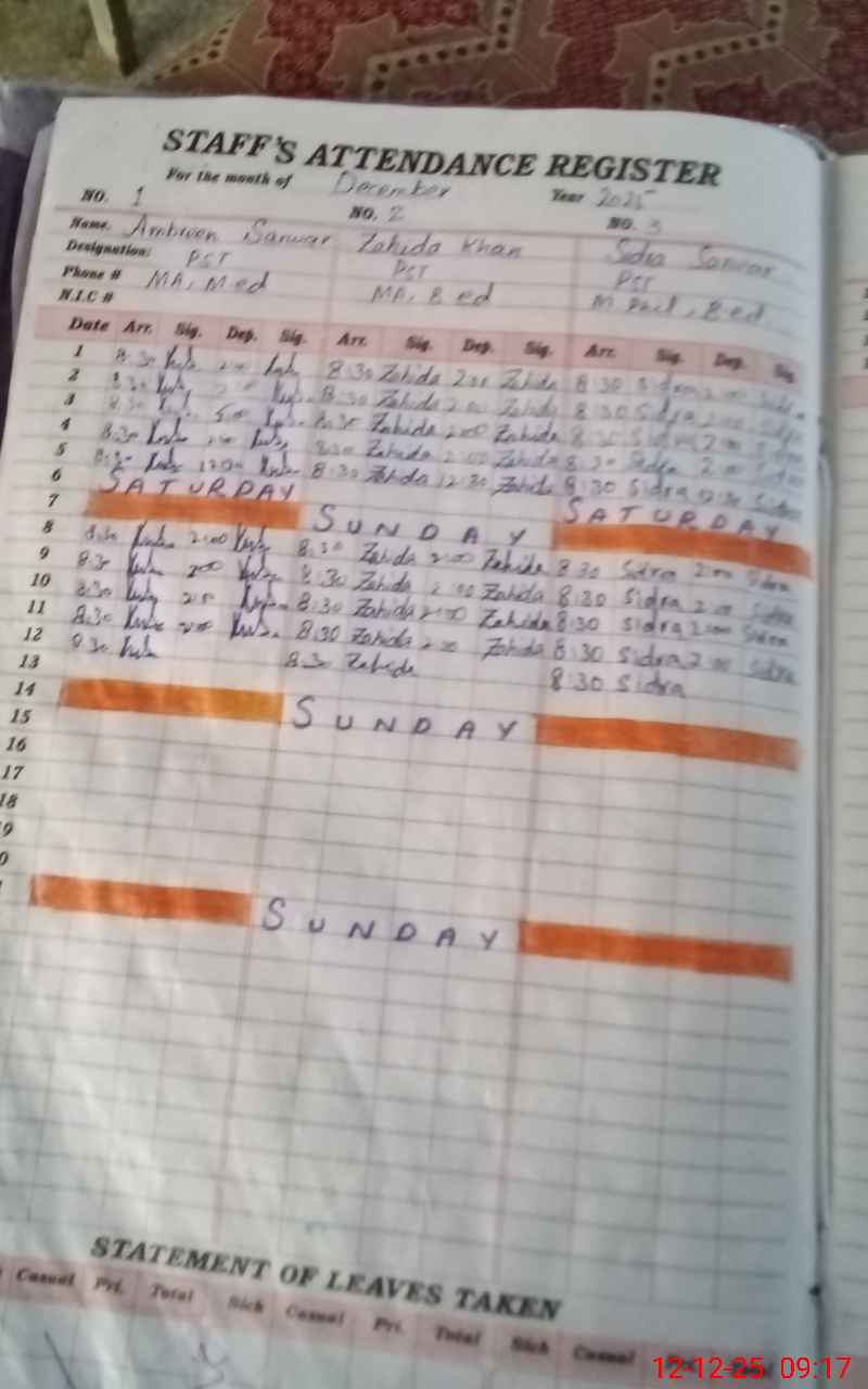 | Name: Am**** Sa**** Designation: (School Headmaster's/Headmistress's) Incharge Headmistress Phone/Cell Number: 03**** |