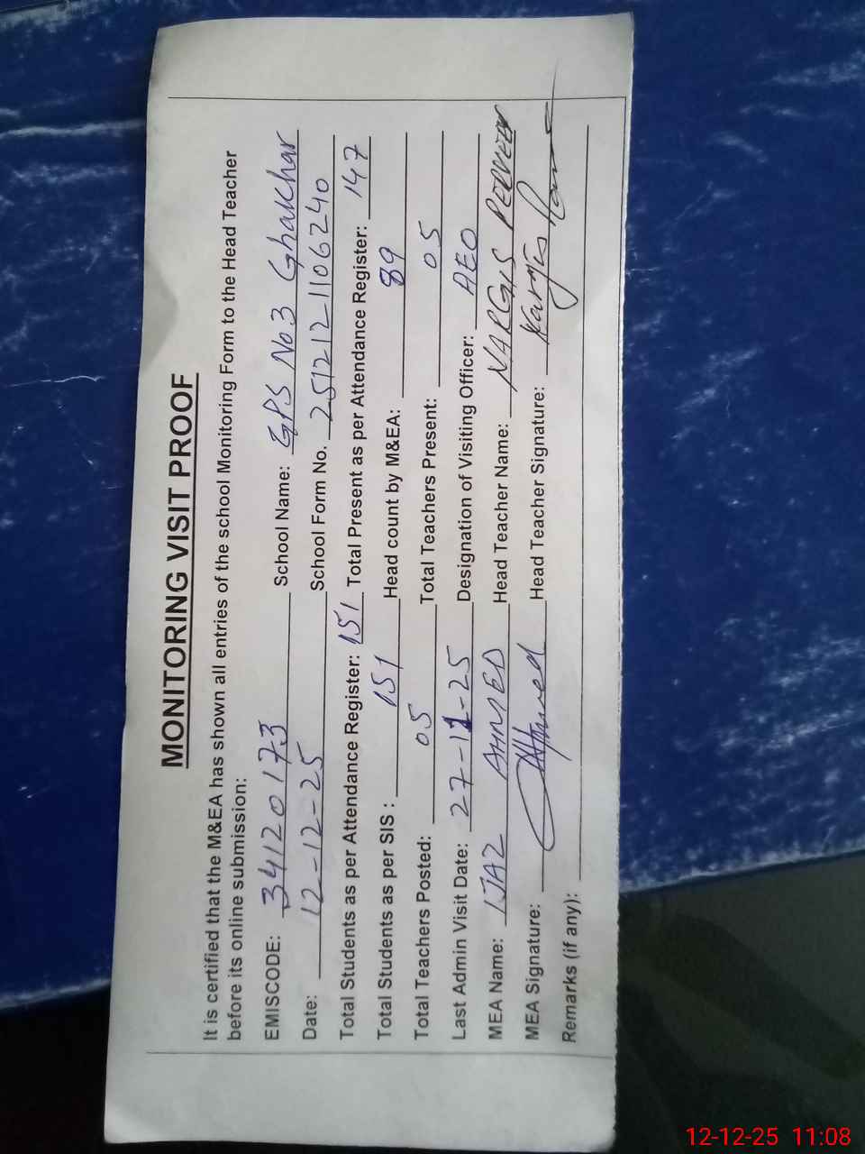 | EMIS Code: 34120173 | Name of School: GPS GHAKHAR NO.3 | |||