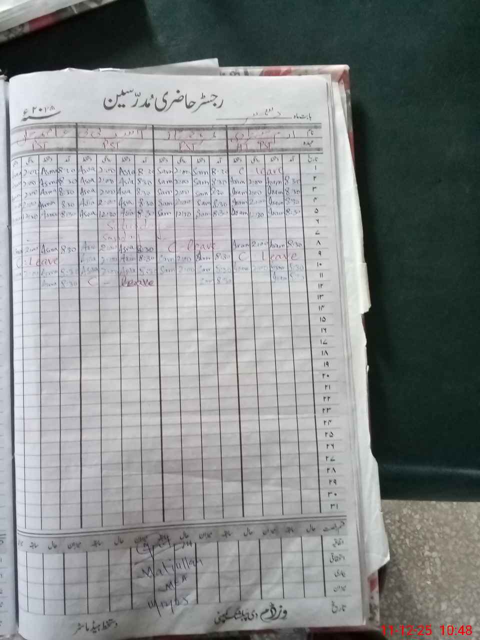 | Name: IR**** SH**** Designation: (School Headmaster's/Headmistress's) PST Phone/Cell Number: 03**** |