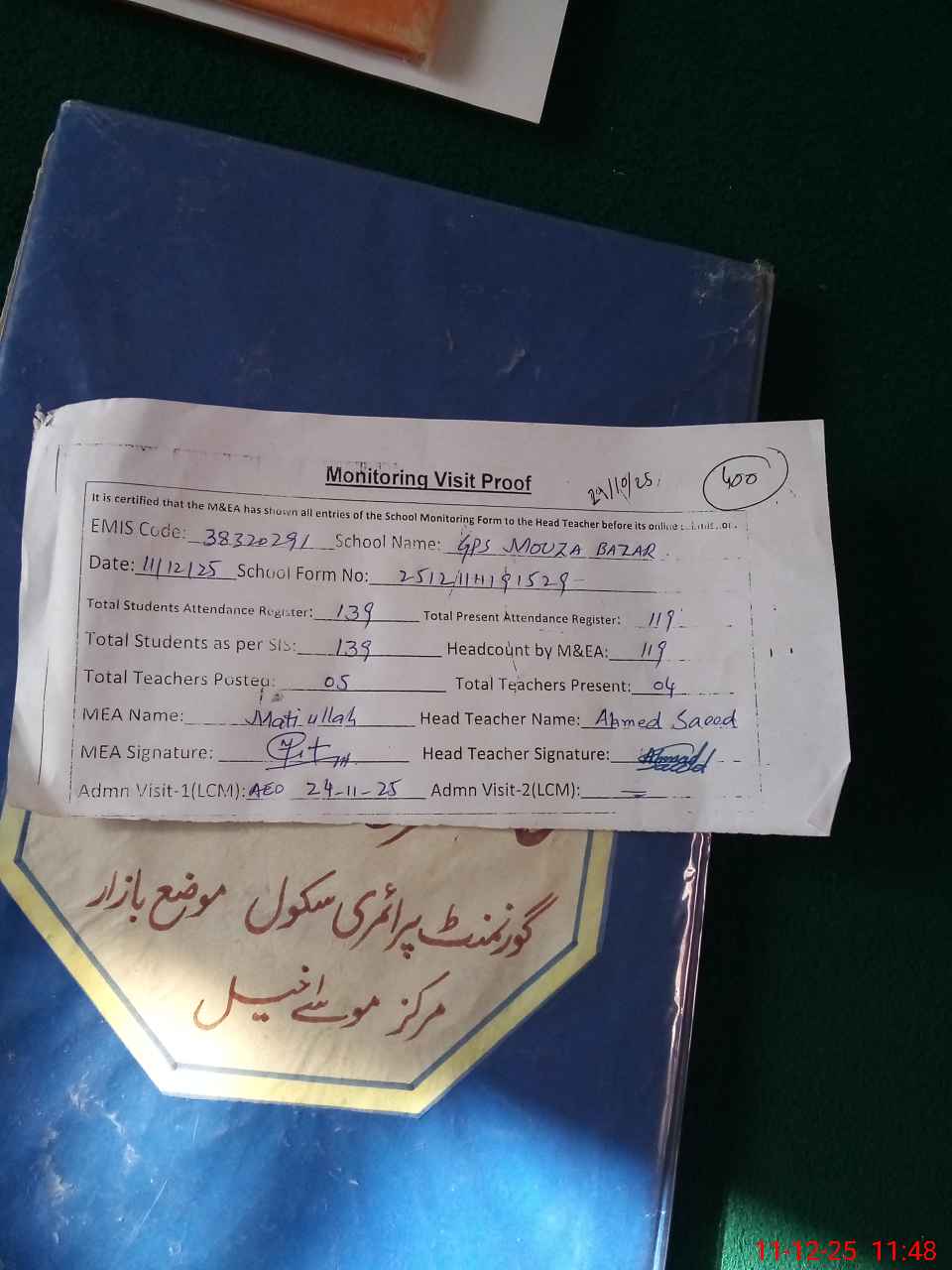 | EMIS Code: 38320291 | Name of School: GPS MOUZA BAZAR | |||